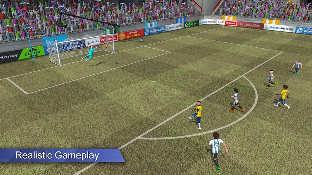 Pro League Soccer apk-en movement of the characters. At the same time, observation is also completely easy to do before the opponent’s tactics.Advanced Ball Physics: Before scoring a goal, each person will often move past the opponent’s defense. This requires precise passes and each player’s skills.Smart AI Opponents: The player’s opponents will often be classified into many different categories. In particular, bot characters can cause you a lot of trouble as they always adapt to your movements.