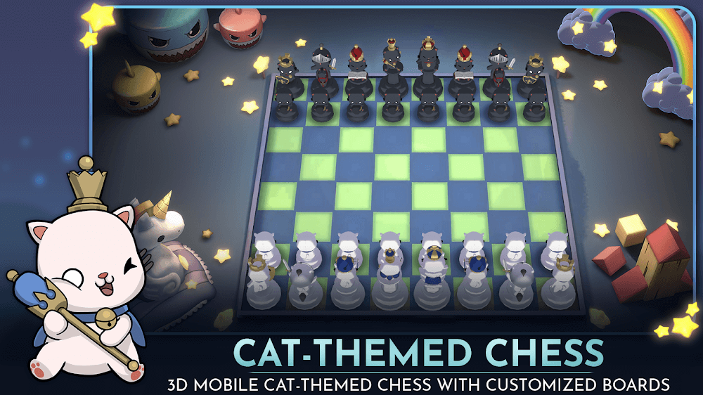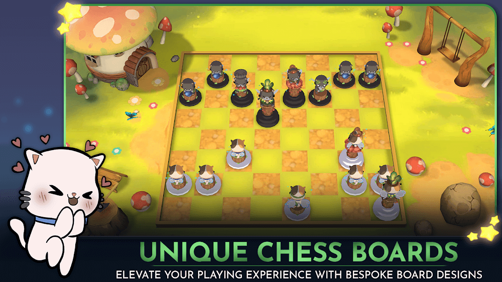 Purrchess apk-en ess boards with different colors to choose from according to their preferences when starting the games. Moreover, players can completely design their special types of chessboards suitable for individuals through the different options that the game has prepared. This will be when players can show off their chess skills and compete with friends when organizing exciting fighting matches. Not only that, but players will also be able to join a community with chess lovers and cat lovers to share beneficial knowledge, skills, and experiences.