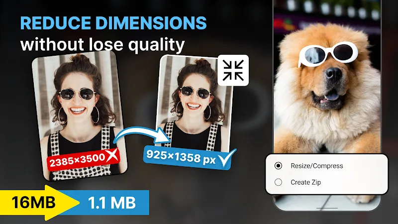 Qreduce Photo Size Compress Premium es will be compressed at once, quick and easy.Advanced Algorithm: The application will help you compress images and reduce file size with high accuracy. It wont damage your photos or losing image quality.INTUITIVE IMAGE RESIZINGYou can resize the image to the size you want or edit it before compressing. The application also allows you to preset options before compressing images, and you can compress multiple images simultaneously extremely conveniently.Precise Control: You can completely change the scale and size of photos