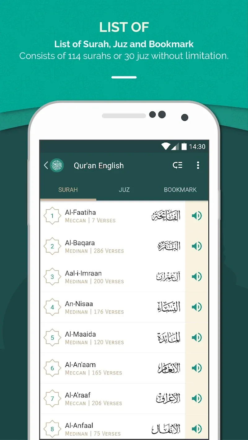 Want to explore the deep stories and messages in the Quran but struggle with Arabic? I had a similar experience, the first thing I had when I tried to read the Quran was the unfamiliar words and complex sentence structures that made me feel confused. But then I found the Quran English app and I can said that it is a game changing. Not only but also everyone who using this app for a while will hold the meaning of Quran, which makes their live more worthy.DIGITAL QURAN TRANSLATIONWith the help of modern technology, users can easily find accurate and easy-to-understand translations for each verse. This mean that they will grasp the profound content and meaning of this sacred text.This will specially helps you to connect spiritually with cultural and religious values in a deeper way.Arabic Vocabulary Learning: If you think that the app only helps you learn the Quran, you are wrong. This app actually has the ability to help you learn Arabic once you can read the Quran fluently.Deeper Meaning Contemplation: If this app has made you understand the meaning of each verse, you will also be given the privilege to dig deeper into the profound meaning of each verse. It can be said that the app will help you deeply sympathize with what the scriptures say.AUDIO MP3 MURATTALThe app not only helps improve the ability to memorize and memorize verses but also facilitates those who want to recite the Quran completely and accurately. The combination of sound and sacred content will definitely enrich each person’s spiritual experience.Text-Audio Synchronized Learning: Not only can you be provided with a long sutra, the app also has the function of reading the sutra so that users can focus on the words and listen to the sutra. This feature will create the most relaxing moments for its users.Diverse Recitation Styles: The app does not only have 1 voice for all the sutras. The developers have added many voices from men to women to adults and even children. This serves the purpose of giving users an experience that best suits their preferences.