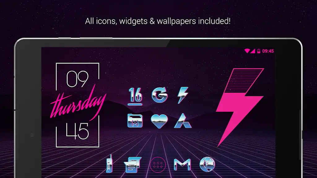 Introducing Rad Pack Pro MOD APK – the ultimate 80’s-themed icon pack and wallpaper collection that turns your device into a retro masterpiece.Rad Pack Pro, a cutting-edge theme, brings back the nostalgia of the 1980s by infusing your electronic device with uber-cool retro chrome and neon icons and a selection of jaw-dropping wallpapers. If you’re a fan of that iconic decade or simply want to enjoy a blast from the past, these hand-crafted icons will take you right back to the era of disco balls and boom boxes. High-quality and high-definition, these super rad icons promise a straight-up gnarly aesthetic overhaul for your device!A LOOK INTO THE RETRO-FUTURISTIC FEATURESIn this high-tech era, it’s comforting to be reminded of simpler times. The Rad Pack Pro captures the spirit of the 1980s with an astounding 4,200+ hand-crafted chr