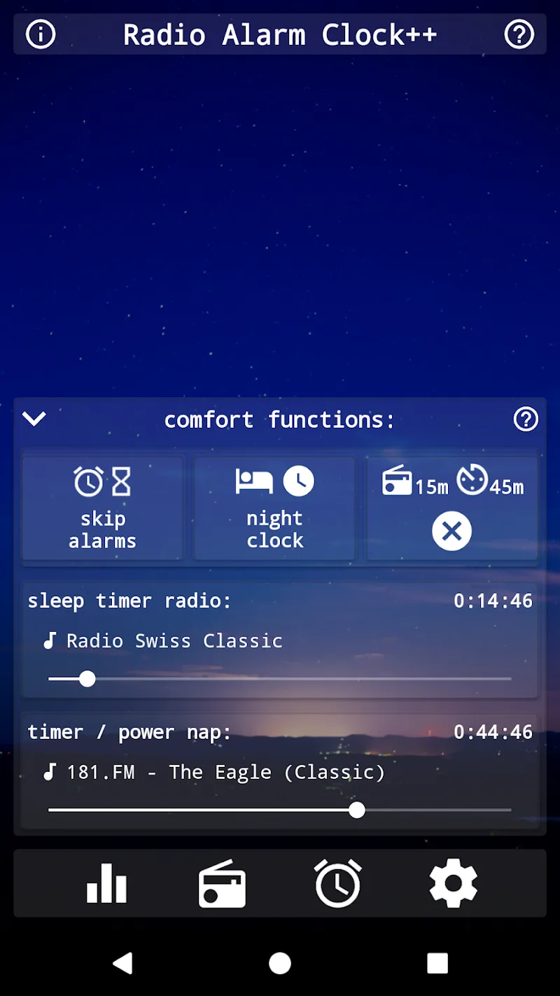Radio Alarm Clock apk-en ou extremely attractive and unique user experiences that will immerse you all day without getting bored.Integrated Sleep Timers: Not only can it be an alarm, but the application can also remind you of your bedtime. You can set your sleep time, and the app will remind you to go to bed on time.One-Touch Quick Start: You also don’t need to do too many steps to access the app. With just one touch, you can quickly access and use the app in the fastest way.