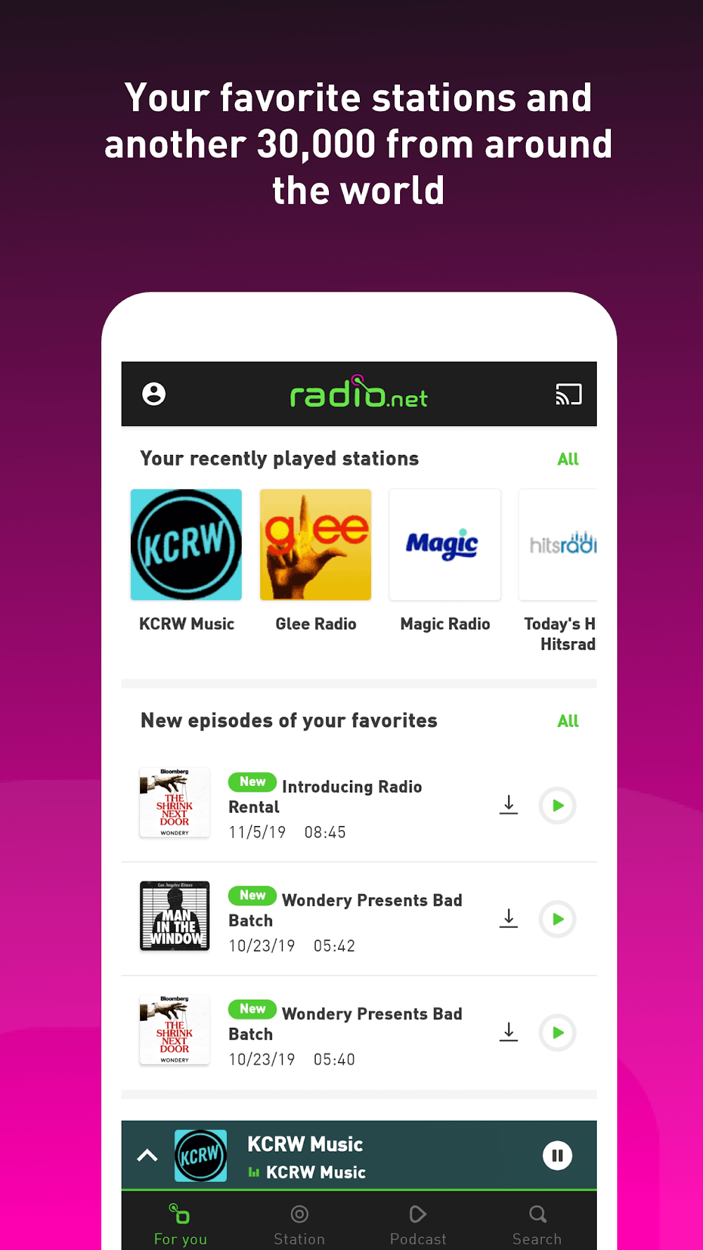 radio.net – AM FM Radio Tuner will bring you a super sharp radio. With this application, you do not need to buy a radio or carry a heavy and complicated radio with you anymore, but the application will quickly turn your phone into a radio and you can listen to your favorite radio programs anywhere and anytime you want.RADIO PLAYER FEATURESWith this application, you will own a set of extremely complete and professional broadcasting features, these features will help you to use and listen to the radio easily and quickly without encountering too many difficulties.Global Station Access: You will have access to radio stations around the world quickly, easily, and fully, giving you extremely diverse and rich user experiences.Quick Favorite Access: The application allows you to create your own favorite folder and you can access this folder at any time you want as quickly as possible without having to use too many complicated operations or having to wait too long. You will also quickly listen to your favorite radio stations extremely quickly without spending too much time searching.PODCAST PLAYER FEATURESThe application will also bring you extremely attractive and interesting podcast programs. The best and most meaningful podcast channels will always be brought to you, giving you extremely attractive and in-depth listening experiences.Massive Podcast Library: You will have access to an extremely huge podcast library, with diverse content from emotional to psychological or political, giving you diverse and interesting experiences and options that will keep you immersed all day without getting bored.Custom Playback Options: The application will also bring you an extremely useful feature, which is playback. This feature allows you to playback quickly and easily without having to do it manually, which is time-consuming and annoying. Just install it once, and all the content you want will automatically play back, giving you an extremely convenient user experience.
