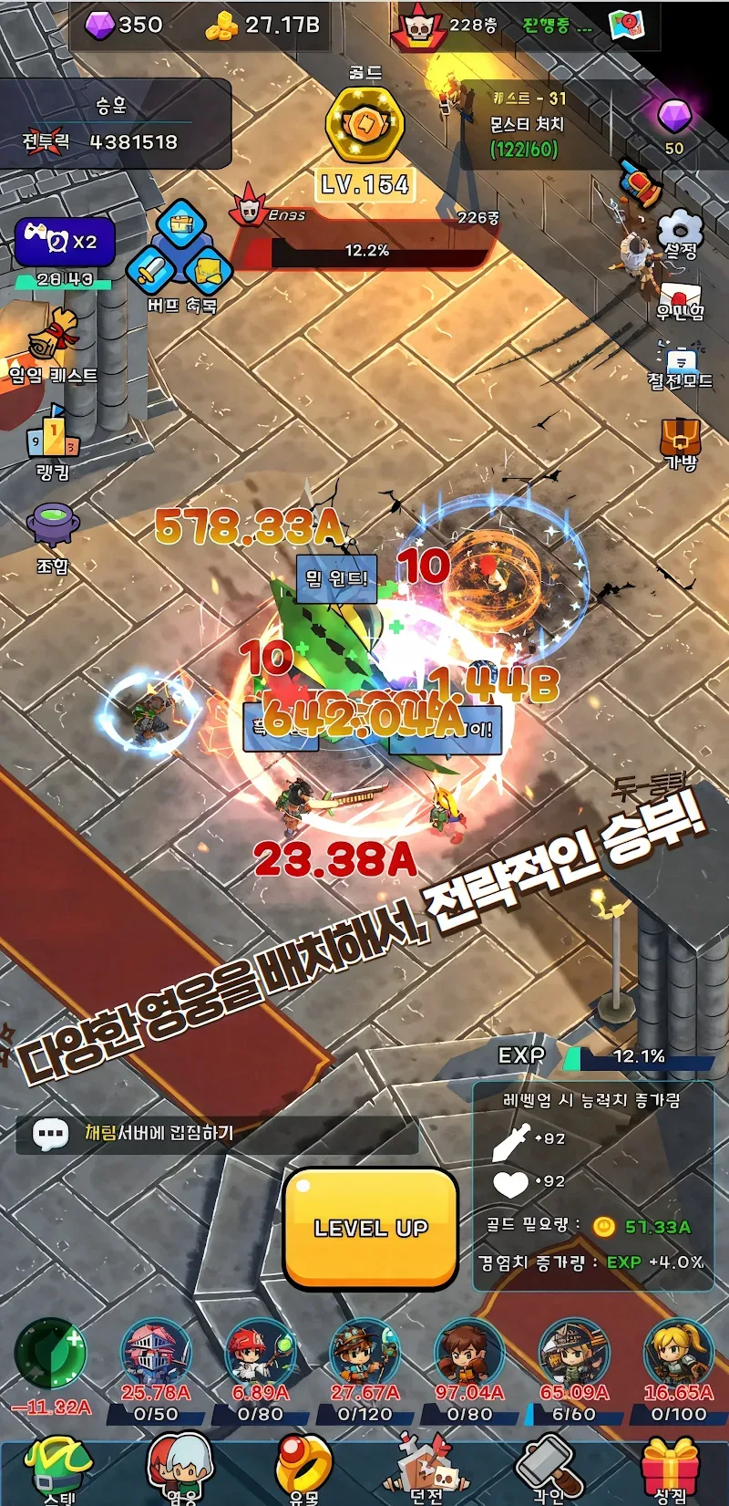 영웅 파티 키우기 – 방치형 수집 RPG is a game designed in the style of idle role-playing that any player who loves this genre should not miss for their collection. The game will bring its players to the context of the Endless Tower being attacked and seriously threatened by the appearance and continuous attacks of monsters from space. Now, the player will become the only surviving hero to form an army and climb the Endless Tower to ensure their safety.DEVELOPMENT WITHOUT LOGGING INThe missions given by the amusement incorporate battling and collecting assets. The method of looking and amassing assets will be sent indeed when the player is offline. Players will have to adjust vital components to