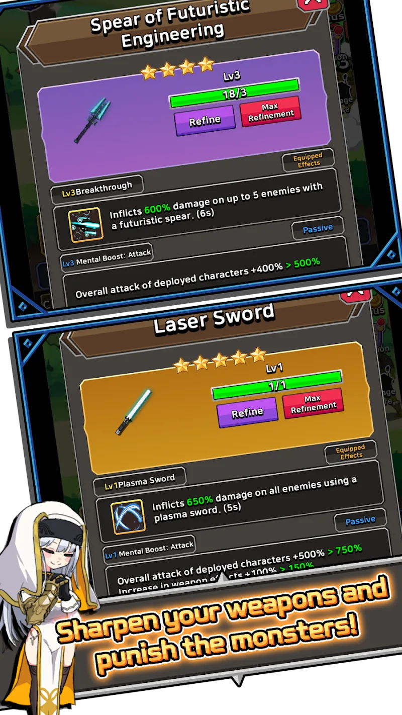 Raising Gang Girls Torment Mob Mod Apk you smash monsters, you’ll acquire coins, weapons, enhancement stones and other loot to boost your capabilities. The more you click and thrash, the faster your gang grows and the harder they can hit. It’s an addictive loop of dealing punishment and seizing rewards.UPGRADE WEAPONS, ARTIFACTS AND ABILITIESA key part of progression in Torment Mob involves upgrading equipment and enhancing the gang’s abilities. Weapons can be refined to become sharper, dishing out even more pain. Artifacts found while looting provide buffs and bonuses when equipped. Meanwhile, the gangster girls themselves can be awakened to reach their full potential. Options like Prison Mode strengthen your crew further through enhancement stones. More power means access to tougher monsters with even greater riches waiting to be plundered.EVENTS, MODES AND COLLECTIONSOn top of the core c