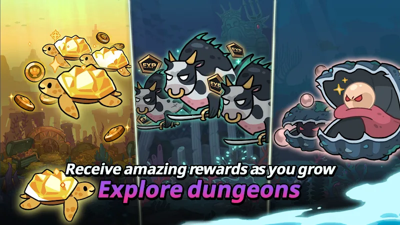 Raising Poseidon Idle Rpg apk-en ome the environment for you to farm. Therefore, you will often see large resources after logging back into the game and being able to use them.Abundant Growth Options: Throughout the game, many people will often be curious about the so-called Poseidon power. Progressing the main mission is one of the conditions to do this.Exciting Dungeon Adventures: The dungeons have been carefully prepared and are scattered everywhere on the seabed. So, prepare everything carefully before entering new areas.