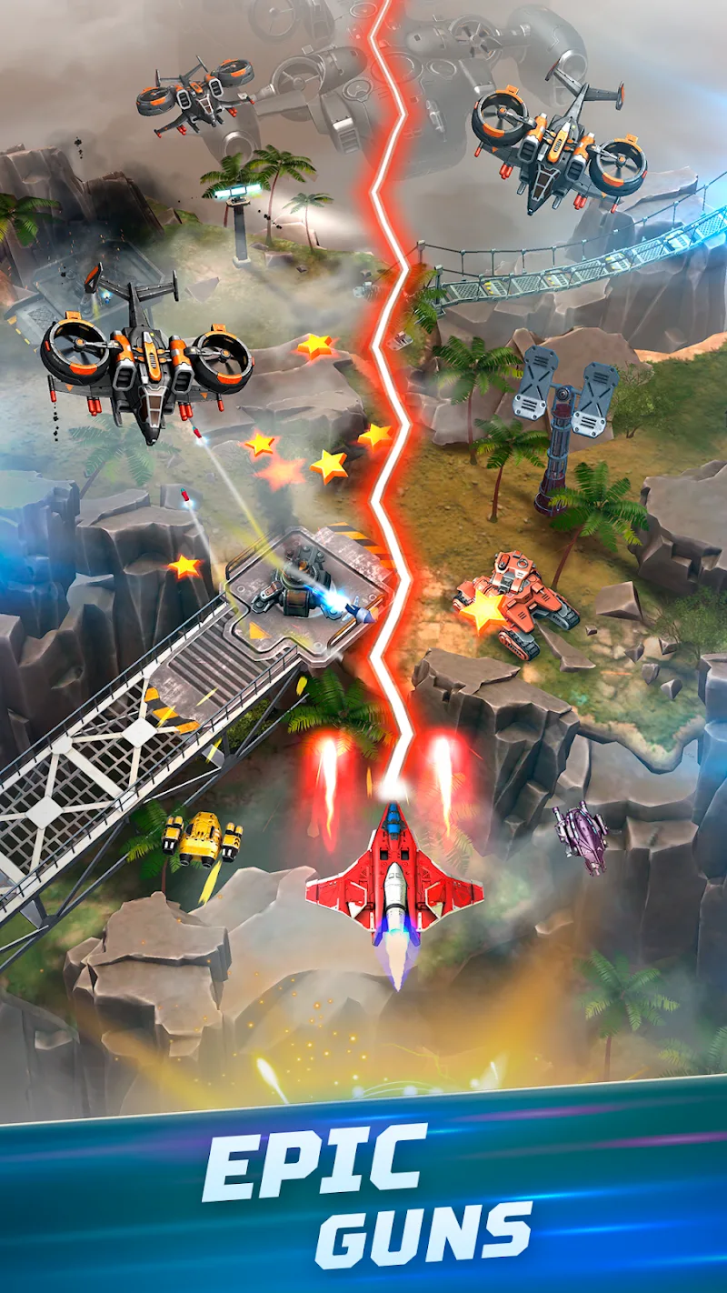 Red Hunt Mod Apk – Unleash airborne chaos! Engage in intense battles against AI in a shooter strategy mix.The red alert hangs over the world. In the airplane shoot ’em up game Red Hunt, only you and your futuristic fighter jet can stop an evil AI and its army of drones, robots and tanks from taking over the planet. Let’s take to the skies for some heart-pounding air combat!EXCITING CAMPAIGN WITH STRATEGIC MISSIONSRed Hunt mixes strategy with shooting action across many levels of varying difficulty. Complete objectives, discover hidden areas, analyze enemies, and replay missions to earn stars and resources. With an expansive campaign offering diverse locations, challeng