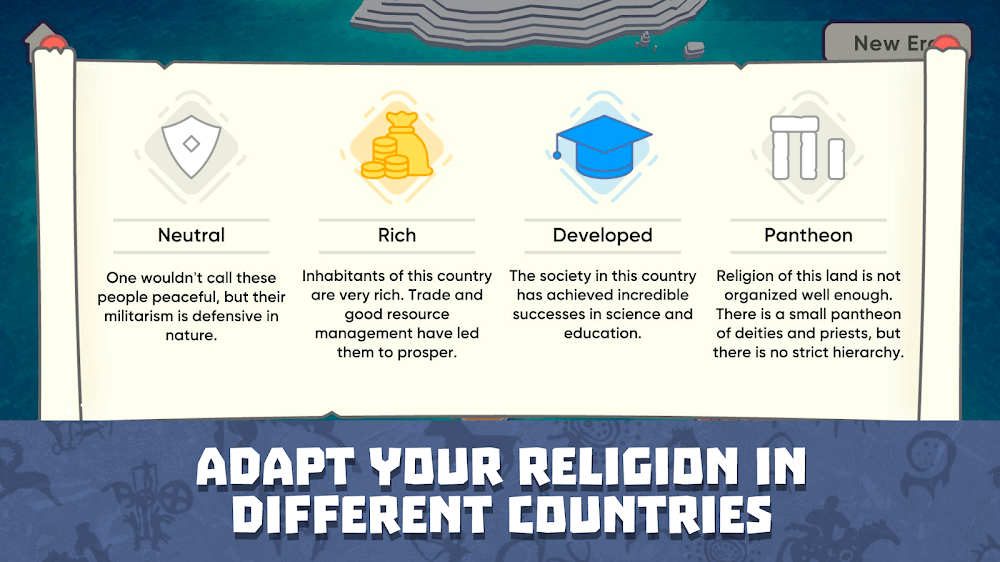 Religion Inc Mod Apk become more popular.Diverse Archetypes: The system often takes each person through many different areas. Of course, the architectural designs often show various cultural values and interesting information.Custom Belief Systems: After being qualified, many people will start the journey of creating a new religion. This is completely easy to do when the mechanisms are completely player-friendly. Impact of Choices: In
