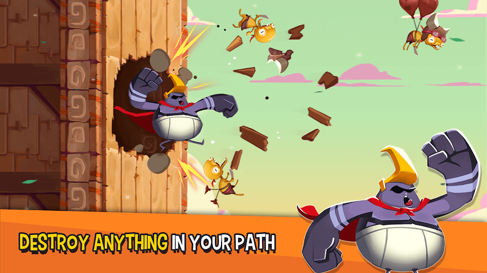 Rocky Rampage Wreck Em Up apk-en ds.Finding a perfect startWhen the player starts the game, your Pebble is clinging to a wild boar, the tool to help players get a good start. Players need to click on the screen to Pebble, drop the boar, and knock Mr. Boulder. If the player can watch the perfect time, the boar will knock the player with great force to help the player go further. If the player does not watch the time to release the boar, he will not have enough speed to go far on his journey.Gather the pantsThe purpose of this journey is to rediscover the pants off the Wonderpants collection. So when the player crosses a wall, the player can collect a pair of pants that the Her Sharpness Empress Clipper dropped when fleeing.