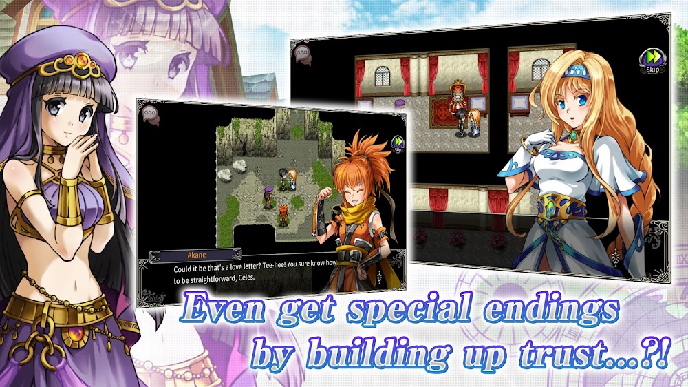 Rpg Asdivine Saga Premium different endings of their teammates.Challenging Battle Arena: In a fantasy world, dangerous enemies are never lacking for you. This is completely understandable when each person can quickly assert their own strength.STRATEGIC POWER PROGRESSIONTo gain an advantage against dangerous enemies, players need to master the power of each mechanism. From there, they will ensure that the attacks launched will often be the most effective against the enemy.Spirit Support System: The player’s strength will cha
