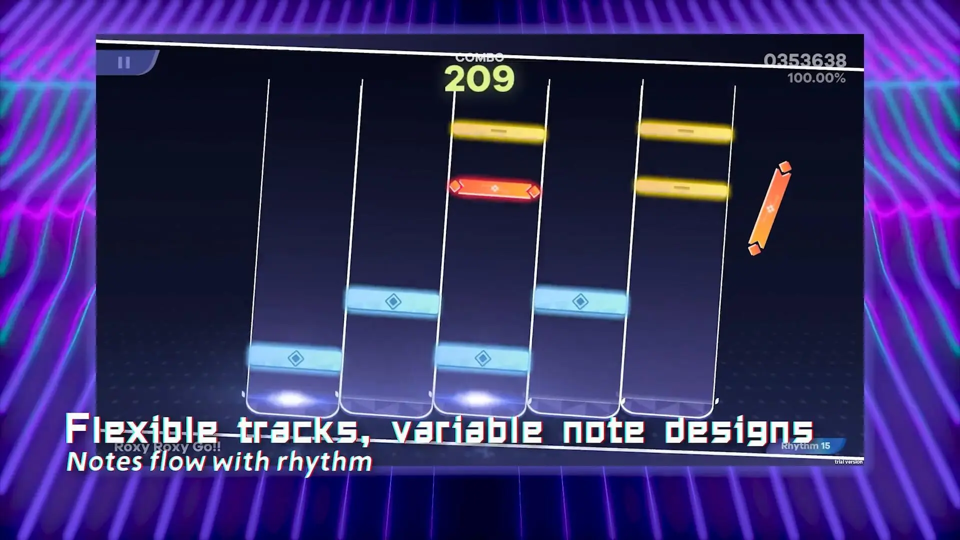 Ryceam Mod Apk he songs.Tracks Freely Move: The tracks have many different lanes. The diversity of the lanes can distract players. All focus needs to be on the running notes. Players can develop their chasing ability in this music track.Innovative Visual Effects: Many visual effects will appear in the game. They make the track much more sparkling and eye-catching. Players can also admire a series of new effects that they have never seen before.Five Distinct Notes: Players will have to conquer many different notes during the race. They also need to distinguish the nature of the notes. A song is only complete when all the notes sound