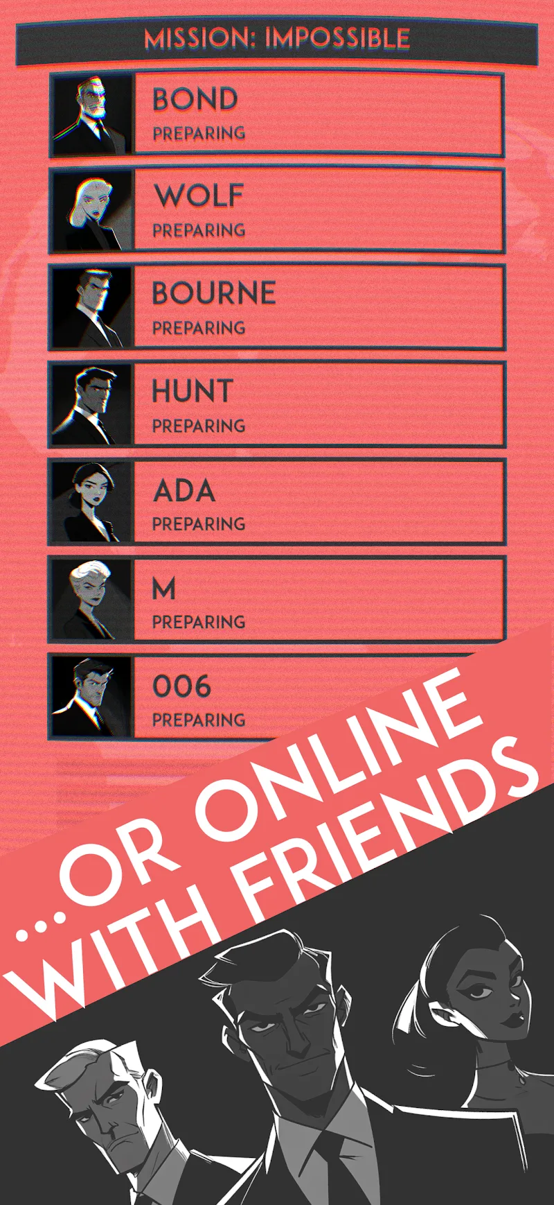 Seven Spies Premium tion for yourself. Help you quickly find the target without spending too much time.Team Suspicion: In this game, you will experience what it is like to be suspicious of your teammates. You will have to come up with perfect reasons to convince them that you are not the target. Bring you moments of entertainment full of attraction and dynamism.DYNAMIC GAMEPLAY VARIETYThe game brings you extremely diverse and rich gameplay. Each gameplay will bring you different levels
