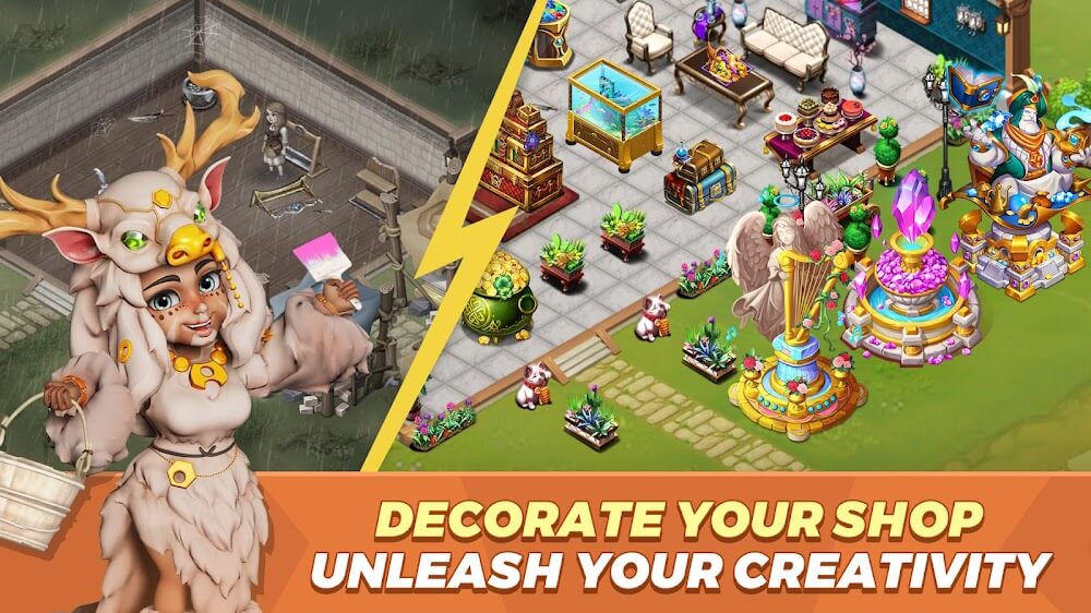 Shop Heroes Legends Idle Rpg Mod Apk uires the former. Keeping your workforce inspired is a surefire way to get high-quality results. Get expert proficiency with Shopkeeper’s Skills! Clearance can help you get rid of low-level equipment that has been collecting dust in your warehouse, while Promotion can help you attract a huge number of customers quickly.DECORATE AND RE-ARRANGE YOUR SHOP WITH BEAUTIFUL STYLESYou may boost your store’s appeal by decorating it, and adding and renovating practical and ornamental furniture can boost your shop’s overall quality. Having a higher Store Rating will get you more incredible rewards and make you more popular among shoppers. You can increase your stockpile capacity by buying more Resource Bins and improving their capacity. The shop’s racks are necessary for making sales and luring clients, while
