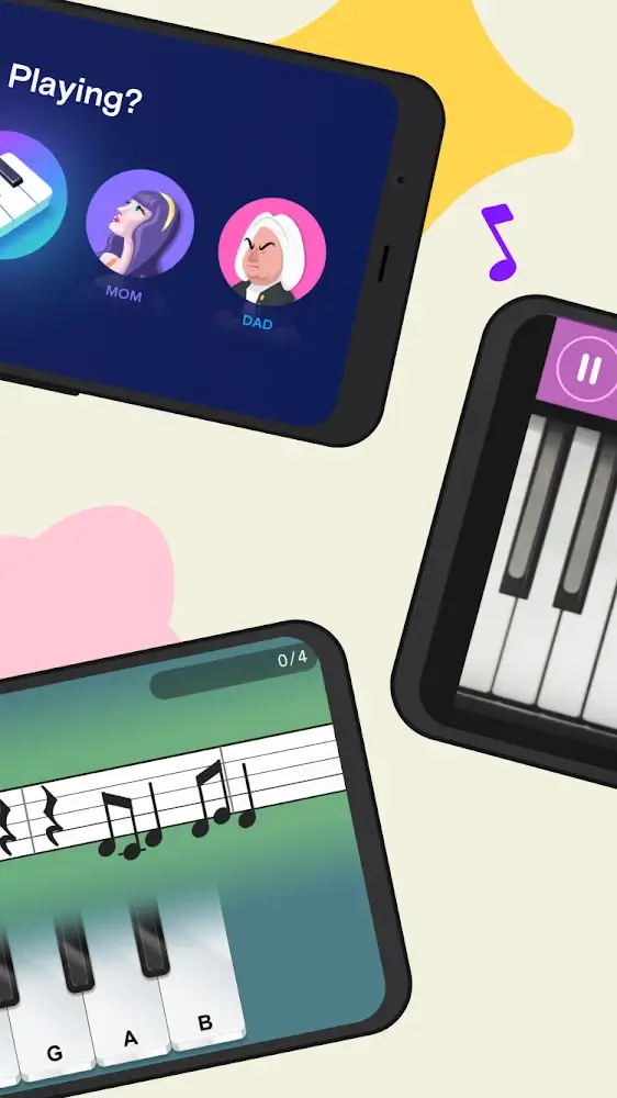 Simply Piano Mod APK is an app that can help you become the best pianist you can be with the skills you learn.Simply Piano: Learn Piano Fast is a music application that contains many attractive songs from different genres. Besides, you will enjoy and experience unique performances by famous artists. Moreover, you can also learn how to play music and play different musical instruments in this new application. Don’t forget to introduce and share your achievements on social networking sites so everyone knows.MASSIVE SONG LIBRARYWith a huge library containing hundreds of unique and famous songs, users will have the opportunity to freely enjoy every song as they wish. Besides, you will meet and listen to current popular music by world-famous singers such as John Lennon and Bach.Song Variety: You can choose a separate song to enjoy and learn how to play the piano according to your preferences.Genre Mix: The combination of old music with modern music styles creates interesting and attractive songs, causing love in the hearts of all players.Popular Artists: Coming to the application, you will meet and get to know many famous singers, and you will listen to and enjoy the music they compose in the most wonderful way.STEP-BY-STEP VIDEO LESSONSYou can learn music based on the guidance of detailed lessons that the application provides. Each lesson will have basic and specific instructions for you to follow. Furthermore, you can stop watching the video and practice freely, depending on your ownership.Reading Music: When using this application, you can learn to read music based on the teacher’s meticulous instructions through practical videos. You can try to practice playing the piano with your hands and can improve your playing skills with each lesson.Feedback: Please give feedback and reviews for this application after experiencing it in the most authentic way.COMPATIBLE WITH ANY PIANO/KEYBOARDWhen using this application, you can participate in activities with the piano or other musical instruments to show off your playing talent. The winner will win valuable rewards appearing in this application.Universal Use: Please join and play with your children in this application to increase your knowledge and learn many new ways to play the piano.No Special Equipment: With the modern features we have, you don’t need to buy special equipment to learn and learn a lot of new knowledge.PERSONALIZED PRACTICE PLANSCreate a specific plan for yourself when learning the piano. You should practice regularly and create a habit for yourself to become the smartest user. In addition, thanks to the dedicated instruction of famous experts and doctors, in just a short time you will be proficient in playing the piano.Short Workouts: When you join the app, you get a few minutes to do the exercises more proficiently and visually. (Each person has different ways of doing the test, depending on the requirements of the test)Stay Motivated: This application can provide individual exercises based on songs in the most proficient and intelligent way.Expert Guidance: With the guidance of famous experts, you can play with many different levels depending on your choice. The application is suitable for beginners in the easiest way.FOR ALL SKILL LEVELSYou will meet and get to know different characters everywhere in the world. The application is extremely familiar because its interface is very clear, simple, and easy to see, helping players to quickly solve all problems. In addition, you will also have increased chances depending on each person.Beginner Friendly: You can play with beginners in the most interesting and wonderful way. With an intuitive interface system, each piece of content is clear, and users are extremely impressed and excited to experience the trial lesson in the most fun way.Self-Paced Learning: If you work hard on learning through the videos here, you should focus on learning the piano and slow down the pace of the lesson to make it easier to absorb at any time.Family Learning: You can invite more family members to study together in a more natural and intimate way. Each has different strengths and weaknesses, allowing players to understand the lessons diligently.