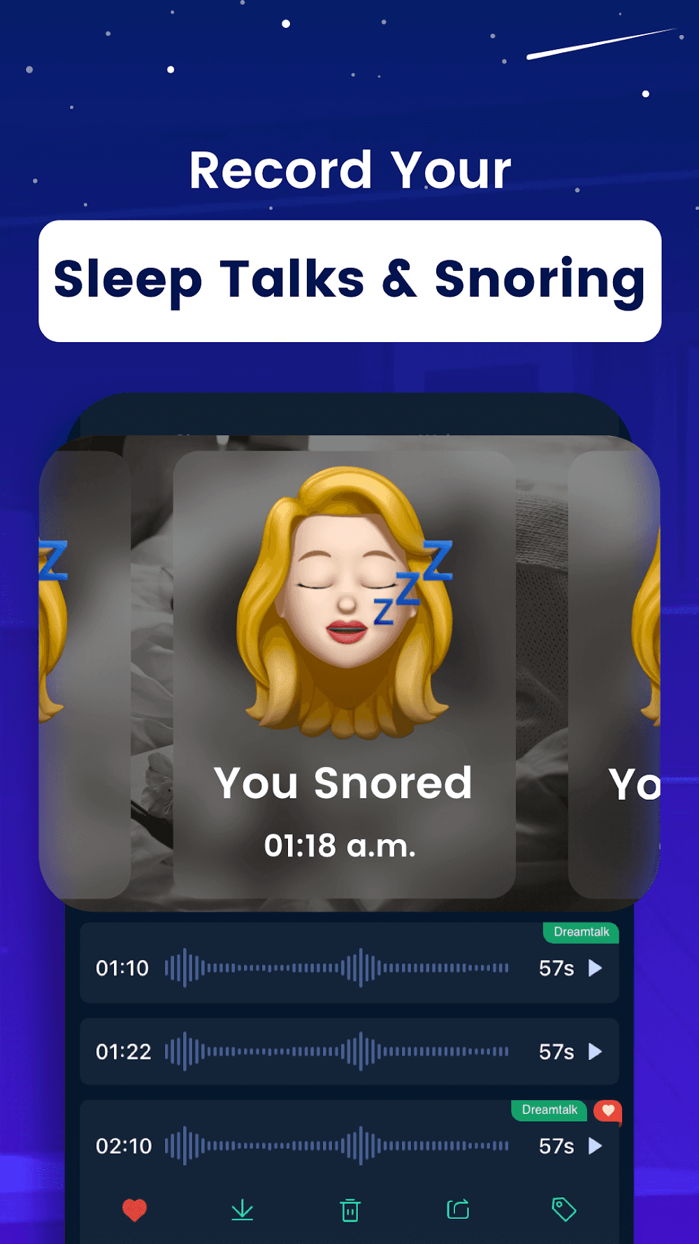 With Sleep Monitor Mod APK, an easy-to-use sleep tracker app to aid, track, record, and analyze your sleep.Sleep is always one of the important tasks that a person will need to perform in a day. To maintain good health, we all need quality sleep. And to be able to know how your sleep is going, Sleep Monitor: Sleep Tracker will be a perfect solution.IN-DEPTH ANALYSIS OF YOUR SLEEP PATTERNS OVER TIME WITH SLEEP TRENDSThe application will prioritize monitoring and recording relevant data carefully to serve sleep-related tasks. Through the sleep trend feature, all data will be tallied on a specific timeline and carefully intuitively divided into weeks or months. Not only that, the application will also be able to classify the user’s sleep stages scientifically. From there, you can control your sleep quality most accurately.Review Long-Term Sleep Habits: Your sleep data will be carefully recorded according to a specific time system. So, your long-term sleep habits, such as weekly or monthly, will be fully recorded.Track Key Metrics: If you don’t really care about complex, specialized data, the application will also give you key parameters. These will include total sleep duration, sleep efficiency percentage, and time spent in each sleep stage.Spot Sleep Disruptors: To upgrade your sleep, the application will also help you find bad factors that affect sleep. They will often affect your lifestyle, habits, and the negative environment around you.VIEW IN-DEPTH SLEEP STATISTICS LIKE TIME IN EACH STAGEAccording to research by leading scientists, a normal person’s sleep is divided into many different stages and cycles. To help its users better understand their sleep, the application is also equipped with the ability to accurately track these factors. After each sleep, the application will also provide you with objective assessments of the previous night’s sleep so you can better understand your health.Precise Tracking: To create absolute trust for users, the application will also provide sleep-related indicators such as their sleep stages or cycles per night.Daily Review: To continuously monitor your health, the application will allow you to check statistical information every morning when you wake up with a detailed summary table.Progress Monitoring: To continuously improve your sleep performance, you will need to track your sleep progress metrics over a weekly or monthly period.FALL ASLEEP FASTER WITH SOOTHING, HIGH-QUALITY SLEEP MUSICAnd one of the most important conditions for achieving quality sleep is the way you fall asleep. Sleep Monitor can provide you with a smooth, quick sleep through soothing sounds or music. These music are created to relieve your thoughts and make it easier for you to sleep. So sleep will become smoother and you will also reduce stress better.Relaxing Sounds: Listen to soothing lullabies and nature sounds calibrated to help quiet your mind and speed up sleep onset.Reduce Anxiety: Humans are often restless and worried about various issues in life before sleep. However, this stress will be significantly reduced by using the application’s sound system.Wide Variety: A music and sound system has been equipped to continuously offer its users a new experience. Users will simply choose a category that suits them.WAKE UP FEELING RESTED WITH THE SMART ALARM CLOCKHow you end your day with sleep is important, and how you start your day by waking up is equally important. The application will suggest a reasonable time for you to wake up after completing a sleep cycle instead of falling into a deep sleep. This can also help prevent you from becoming dizzy and having more headaches in the morning. Not only that, the alarm ringtone has also been tweaked so you can start your day more gently.Gentle Wake-Ups: Set a smart alarm clock to wake you up gently at the optimal time in your sleep cycle, avoiding jarring awakenings from deep sleep that leave you feeling groggy.Bedtime Reminders: Optionally set a bedtime reminder to help you get to bed early and maintain a consistent sleep schedule.Customizable Schedule: Easily adjust alarm and bedtime settings to fit your unique schedule.RECORD AND ANALYZE SOUNDS LIKE SNORING TO LEARN ABOUT YOUR SLEEP QUALITYSleep will not only be assessed through the amount of time spent sleeping, but it will also be expressed through your snoring. Sleep Monitor has also provided its users with the ability to automatically record sounds during your sleep such as snoring, sleep talking and ambient sounds. From this recorded data, the application can discuss your sleep problems. Through that, you can find solutions to improve your sleep quality completely.Automatic Recording: The user’s sleep quality will not only be measured through time but also about sound and surrounding space. The application will also automatically record impact factors such as snoring, sleep talking, and other nighttime sounds.Share or Discuss: Through these automatic sleep recordings you will be able to discuss with your doctor. Or, more simply, you can share those funny audio clips with your close friends.Troubleshoot Issues: The ultimate goal of sleep recordings is that you will be able to find exact problems related to your sleep to come up with solutions to improve.