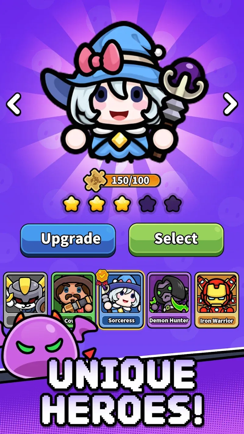 Slime Clashroguelike Shooting Mod Apk this game, from the characters to the scenery in the game, is designed by the producers with great care and detail.Vibrant Hero Designs: The warriors in this game have extremely cute and colorful interfaces, giving you the feeling that these characters are real because they are made so vividly. Every gesture exudes authenticity.Unique Hero Skills: Each warrior not only has a different interface and personality, but they also possess extremely unique skills and fighting abilities. You will quickly find a character that suits your playing style and strategy to bring the bes