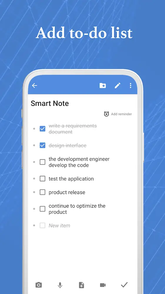 Smart Note apk-en e the security key to prevent access without a password. We will create more links with Google Drive to make your work more convenient.RECORD EVERYTHING IN LIFESmart Note will assist users in taking detailed and particular notes and not missing key day information. Each recording can be done in a variety of methods, such as a printed document, a handwritten note, or an accurate audio recording. All of your notes will be kept with the name and content you provide, and the application stores them in memory and makes them easily searchable. Users’ general permissions in the program will be further specified by the privacy and organization policies made available to them.