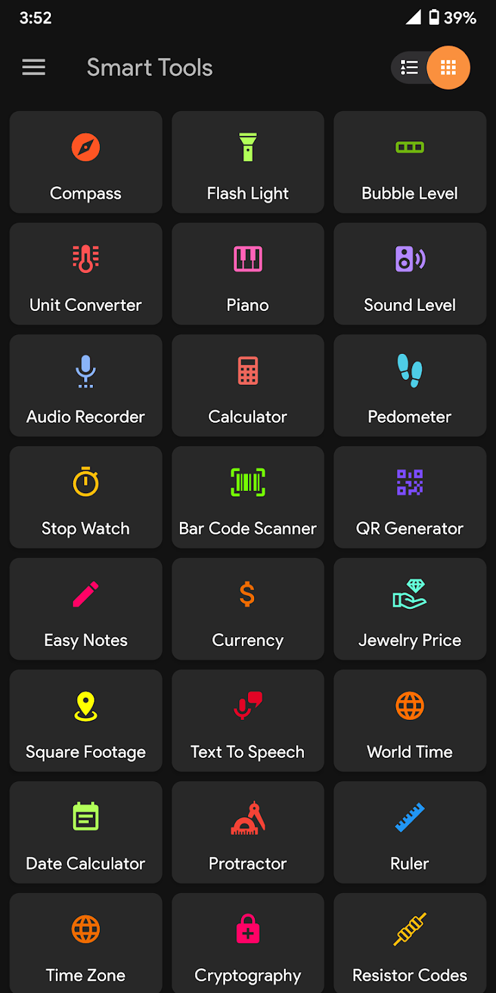 Smart Tools Multipurpose Kit Mod Apk provide accurate measurements and calculations, making it an indispensable part of many daily tasks. The sophisticated and beautiful design ensures minimal storage usage while maintaining a user-friendly interface that makes navigation easy.COMPREHENSIVE TOOLS SET WITH MULTI-FUNCTIONALITYWhether you need a QR or barcode scanner, a unit converter or a bubble leveler, Smart Tools has you covered. The app also supports specialized functions such as detecting, converting audio, compressing images or converting PDF files, meeting both personal and advanced user needs.Additional tools such as a spee