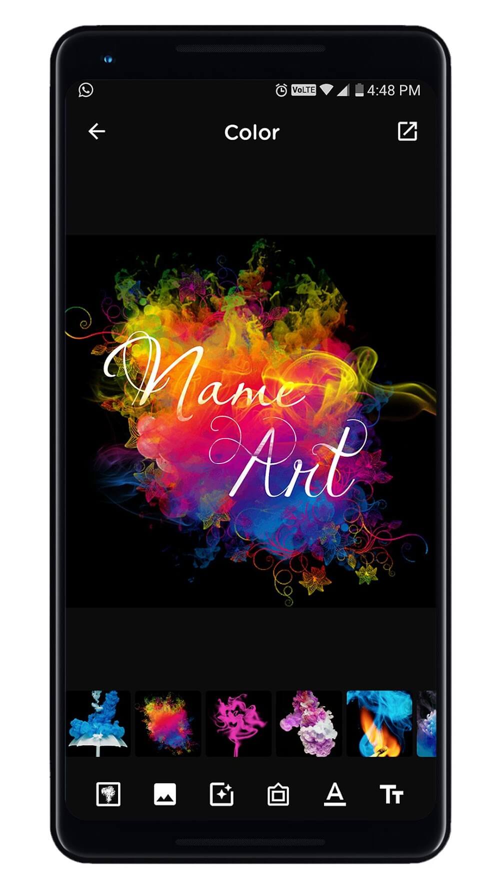 Smoke Name Art Maker Premium nces the text with its unique style. You have complete control over the appearance of your name, including the typeface, color, size, and more. Photo frames, calligraphy fonts, typography quotes, art items, and color brushes and filters can all be added to your name style with Smoke Name Art. Smoke Name Art Effect lets you create your art. Instagram, Facebook, TikTok, Whatsapp, and more, use a unique art name style. This is a simple way to liven up your desktop backgrou