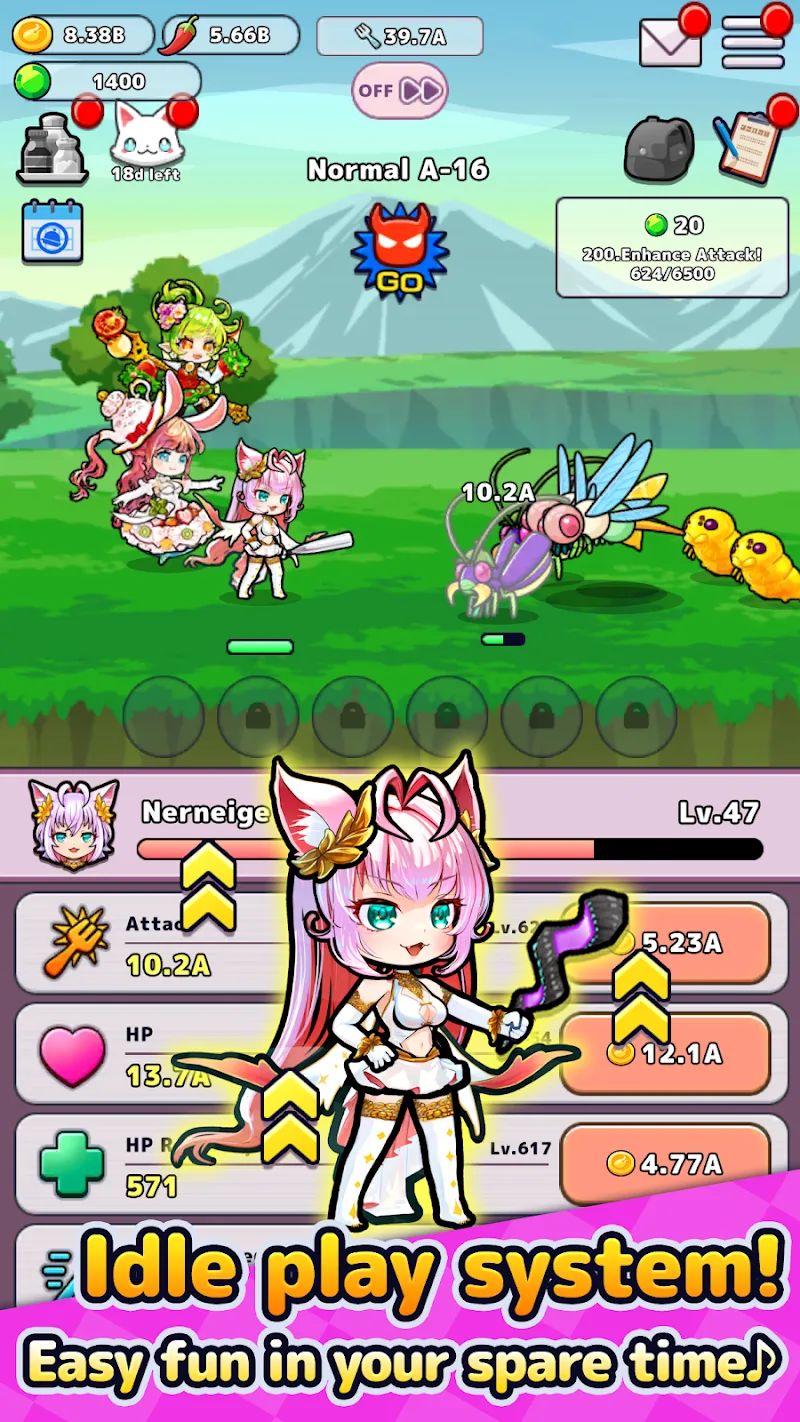 Snacky Girls apk-en nment and engaging mechanics that caters to all different gaming styles, whether you’re a beginner or a veteran. The charming upgraded character visuals, dynamic battles, and simple interface make it easy to get immersed in the game, no matter how busy your schedule or how busy you are.FEATURESEasy one-handed operation on vertical screenAutomatic combat, stress-free entertainmentDiverse combat stylesBuild your own battle strategyUse ultimate weapons and skills to wipe out enemiesImmediately, download Snacky Girls! APK today to experience the game that brings a fresh combination of idle RPG and clear tactical depth!