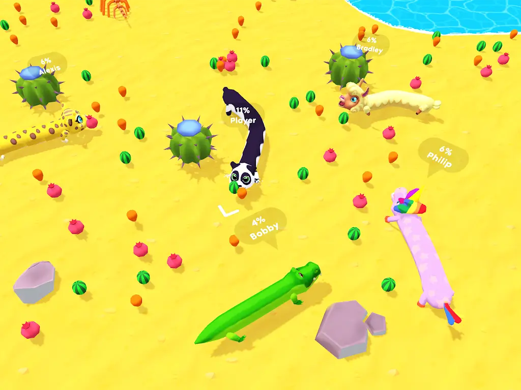 Snake Arena Mod Apk last survivor or the highest score.Simple, Addictive Fun: Inspired by childhood games, players will quickly adapt to the gameplay. At the same time, the challenges will quickly draw them into the survival battle.Grow, Progress, Win: Before causing difficulties for opponents, players need to change their appearance. Specifically, they need to become bigger by eating items scattered in the environment.Challenge, Rival, Satisfy: Once you feel confid