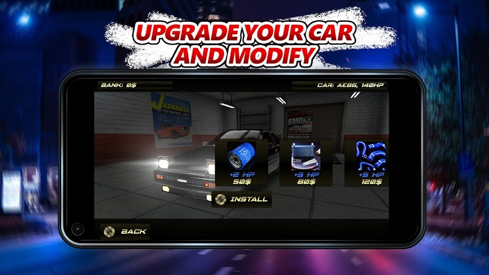 Snr Street Drift Racing apk-en nding on your performance, the points can be increased more quickly.Interactive Gameplay Fun: The environmental factor also creates a certain joy for the player. They can see them being destroyed when using the power that the car possesses.Stunning Fancy Graphics: All elements such as graphics and audio always combine perfectly to create vivid experiences. From there, the player will always live in challenging races.