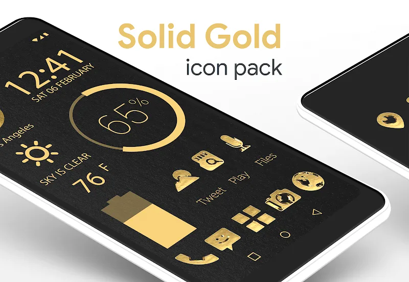 Solid Gold Pro Icon Pack Premium een.Crisp high-definition: The icons in the application are all high quality. The icons have high resolution and are sharp. Helping it to display well on any high or low-quality device.CUSTOMIZABLE WALLPAPERS & WIDGETSThe application will bring you a warehouse of artistic and sophisticated wallpapers. You can freely edit these photos to better suit your preferences and style.Extensive wallpaper collection: Coming to this application, you will come to an extremely unique col