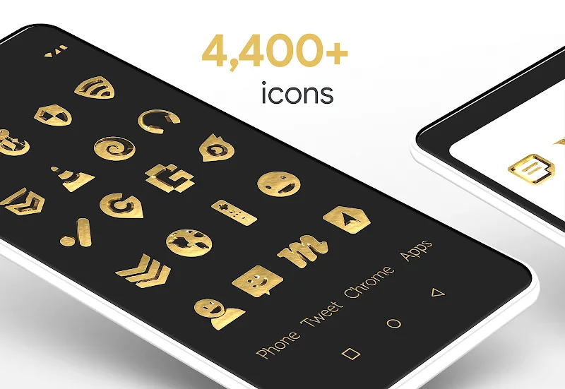 Solid Gold Pro Icon Pack Mod Apk ns with a gold texture. These icons will bring your phone a luxurious and noble beauty.Handcrafted premium icons: The icons that the application brings to you are all hand-designed icons. All icons are hand-drawn and meticulously cared for to bring you the perfect icons to use.Transparent blending effect: The icons are also blended with extremely interesting transparent effects. Bringing you extremely unique and interesting icons so that they can stand out on your phone scr