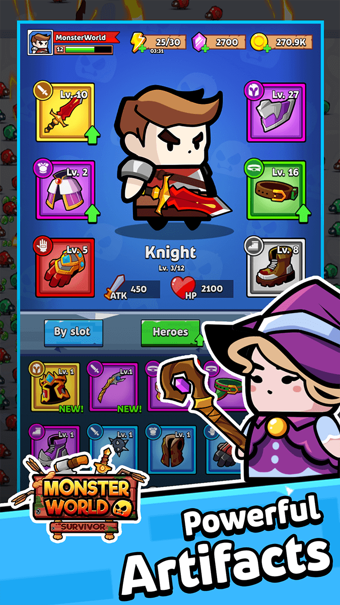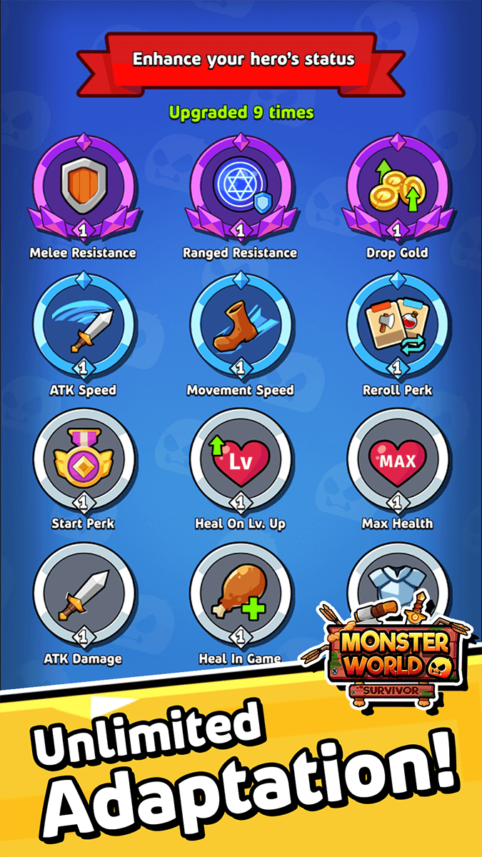 Monster World Survival Io Mod Apk s to shoot penetrating arrows at them. Your job is completely simple: move reasonably to avoid being surrounded and unable to escape. Specifically, the yellow bar continuously fills up at the character’s feet to indicate when the next attack will occur.Become a hero to destroy monsters: Post-apocalyptic enemies need to be completely destroyed.Tough battle: With the understanding of monsters, this is a war without end.Survive with skills: The character’s strength is reflected through the skills collected by the player.UPGRADE YOUR HEROWhen a monster is defeated, it will drop a green gem that you can pick up. Just by picking them up, your experience bar will be partially filled until you get a breakthrough and reach a new level, something that is no longer strange to many people. The reward for leveling up is always a surprise as the player cannot have any influence on it, and they can freely choose one of the three skills. In each skill, there are parameters, skills, and current levels for you to consider and add to your available skill set.Col
