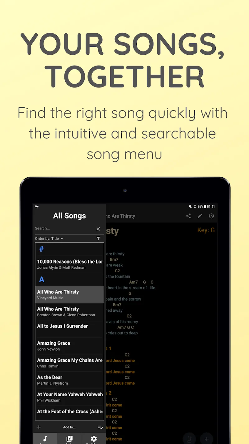 Have you ever searched for an application designed to organize a music storage system that you can easily experience on your device? Then SongbookPro will be one of the great options that you should not miss for your favorite application collection with its attractive features. The application will bring to its users the ability to organize chord charts, music sheets, and songbooks in the most professional way.UNIVERSAL DIGITAL SONGBOOKOne of the most amazing features that this application can bring to its users is to build a system of personal music documents according to the modern digital system. With this application, users will not need to store and search for documents about their songs in paper in a cumbersome and inefficient way. This application is built to help guitarists, bassists, vocalists or anyone who is working with complex music, chord charts.Paper Elimination Solution: The application will help eliminate bulky paper songbooks and scattered chord charts into a neat application.Clear Display Format: The system has the ability to display chords and lyrics in a clear, easy-to-read format for seamless performance.Live Performance Sets: Users will be able to group songs into sets for quick switching during live performances.CROSS-PLATFORM SYNCINGBesides the main feature that this application can bring to its users, they will be able to receive a highly efficient synchronization system for work. The application will be able to fully provide its users with the ability to synchronize between different devices that they are using with popular operating systems today. Not only that, users will also be able to share their music storage system with others in the band very easily.Multi-Device Compatibility: The application is built to synchronize songbooks across Android, iOS, Windows 10, and Amazon Fire devices.Easy User Sharing: The system develops an easy sharing feature between SongbookPro users for band collaboration.Multiple Import Sources: Users can perform imports from multiple sources, including UltimateGuitar and PDF documents.