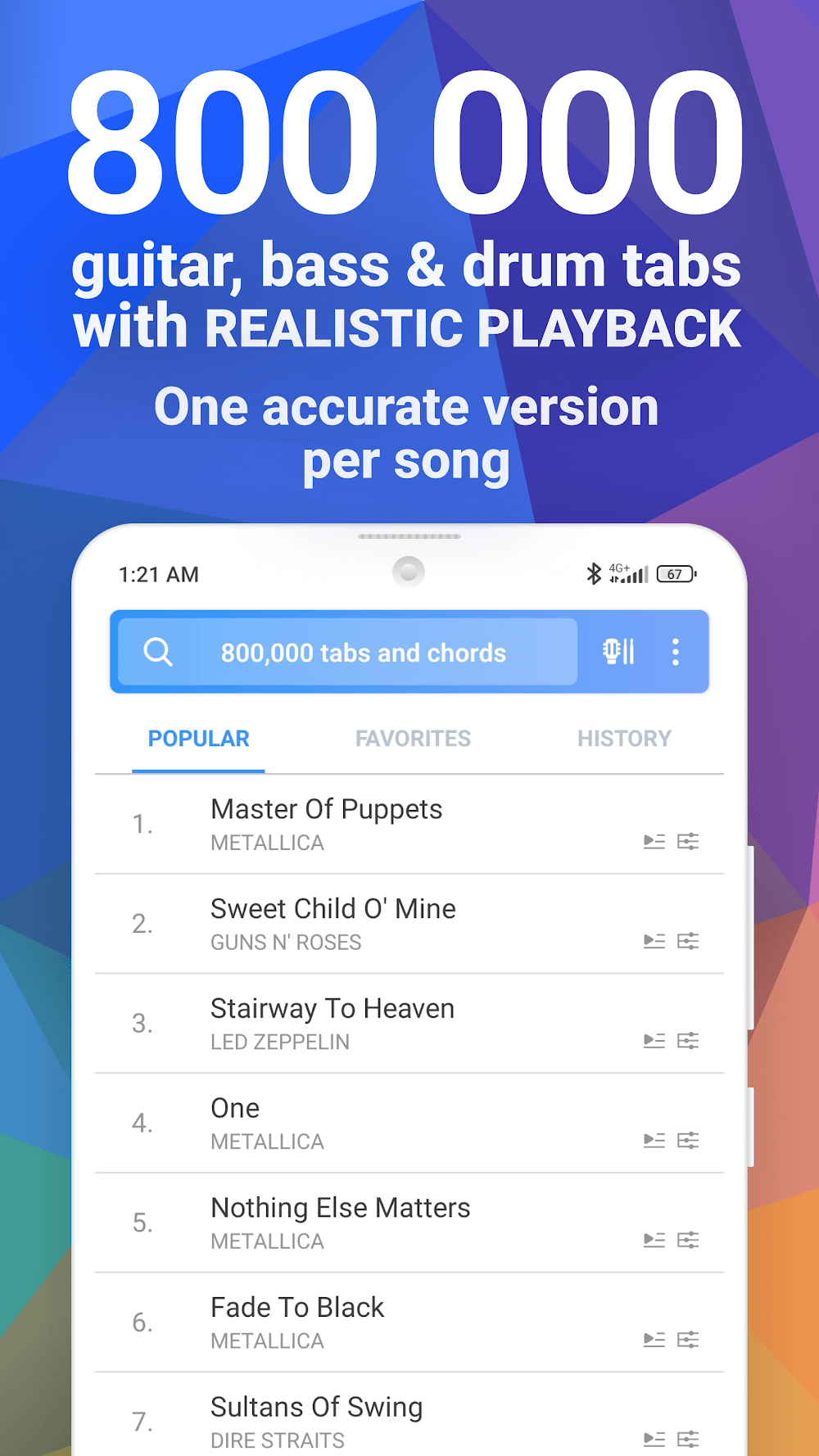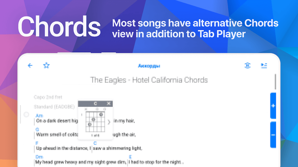 Songsterr Guitar Tabs & Chords is an application that brings you many interesting lessons through available guitar teaching videos. With a diverse and attractive music treasure trove along with many talented artists, you can learn guitar every day in your own way. If you are in need of self-learning to sing and play at home, try this application and explore the smart features it provides to learn more useful lessons, helping you improve your playing skills.HUGE CATALOG OF TABSIf you want to practice playing the piano and have a passion for music, this is a useful application that can meet all your requirements. Most people save money by learning the piano at home and working harder through online teaching videos. As long as you are excited and interested, this application will be the right choice for you. In addition, you will also be able to comfortably experience a vibrant music space.Over 800,000 guitar, bass, and drum tabs & chords: The application provides users with many chords of many different types of guitars, creating opportunities for users to learn online.Tabs for all your favorite songs and artists: Here, you will discover and meet many famous artists. Choose your favorite songs to create your own collection.REALISTIC GUITAR ENGINEHere, you will interact and meet many good teachers, who are all talented artists and can impart to you the best knowledge and experiences related to music. The music they create is loved and noticed by everyone; please explore them and draw useful knowledge for yourself.HD quality guitar tones and effects: You will enjoy vivid sounds just like in real life. Every step to practice playing the piano is taught in detail and easily understood by the teacher, so players will quickly learn how to play.Customize the guitar sound: You have the right to edit all sounds and create music according to your preferences. After learning the piano, you will practice playing your style and save it as a video so you can send and share it for everyone to enjoy.SYNCHRONIZED ORIGINAL AUDIOEach song will have different characteristics and ups and downs, providing different long and short hums, so users need to learn carefully and memorize how to play the piano. That way you can become good as soon as possible. In addition, to create more excitement and attraction, you can invite friends or siblings to practice playing the piano together to have a peaceful relaxing space.Play along with the actual song tracks: With your ability to perceive music, immerse your soul in the music and lyrics to create a meaningful work that will leave listeners extremely impressed. Here, there are many different classical and modern music pieces, which give you many extremely opposing characteristics and properties. That’s why you should know how to harmonize and better understand each style to help you play music that is more attractive and enjoyable.Mimics playing: The opportunity is coming right before your eyes, if you really want to learn the piano and play with many artists, this is a good opportunity for you. Imitate and play with them, the teachers will carefully teach you the difficulties and challenges, so please rest assured and enjoy!INTERACTIVE PLAYBACK CONTROLSEach user is allowed to use the videos in this application in their own way. Not only that, they can also enjoy many modes and possess the latest features that the application has just updated. Interact with your teacher, follow them and work hard every day to complete your piano course in the shortest possible time.Slow down, speed up, loop sections: Each track is backed up clearly, with vivid, realistic sound, making people extremely satisfied with the way they learn here. While reviewing the teachers’ videos, you can rewind the most difficult parts to learn more thoroughly. In addition, you can adjust the video to slow mode to make it easier to learn the piano.Isolate parts and instruments: Everyone has the right to plan and create for themselves a specific learning path to make their learning more effective. You can study each video every day; gradually, you will memorize it all and get used to basic playing to more advanced playing.AVAILABLE OFFLINEYou should use this application and share it with everyone around you because it is really useful when you don’t need the internet to still be able to access it. In your free time, you can practice at any different location without needing an internet connection. Don’t forget to download this application and experience it right now!Download and view tabs without the internet: With a simple design but full of smart features, this application has been widely known and widely downloaded and used. It has helped many people learn to play the piano and practice their ability to perceive music better.Uninterrupted access: While traveling or on the bus, you can turn on the music and enjoy gentle, romantic music to make your mood better.