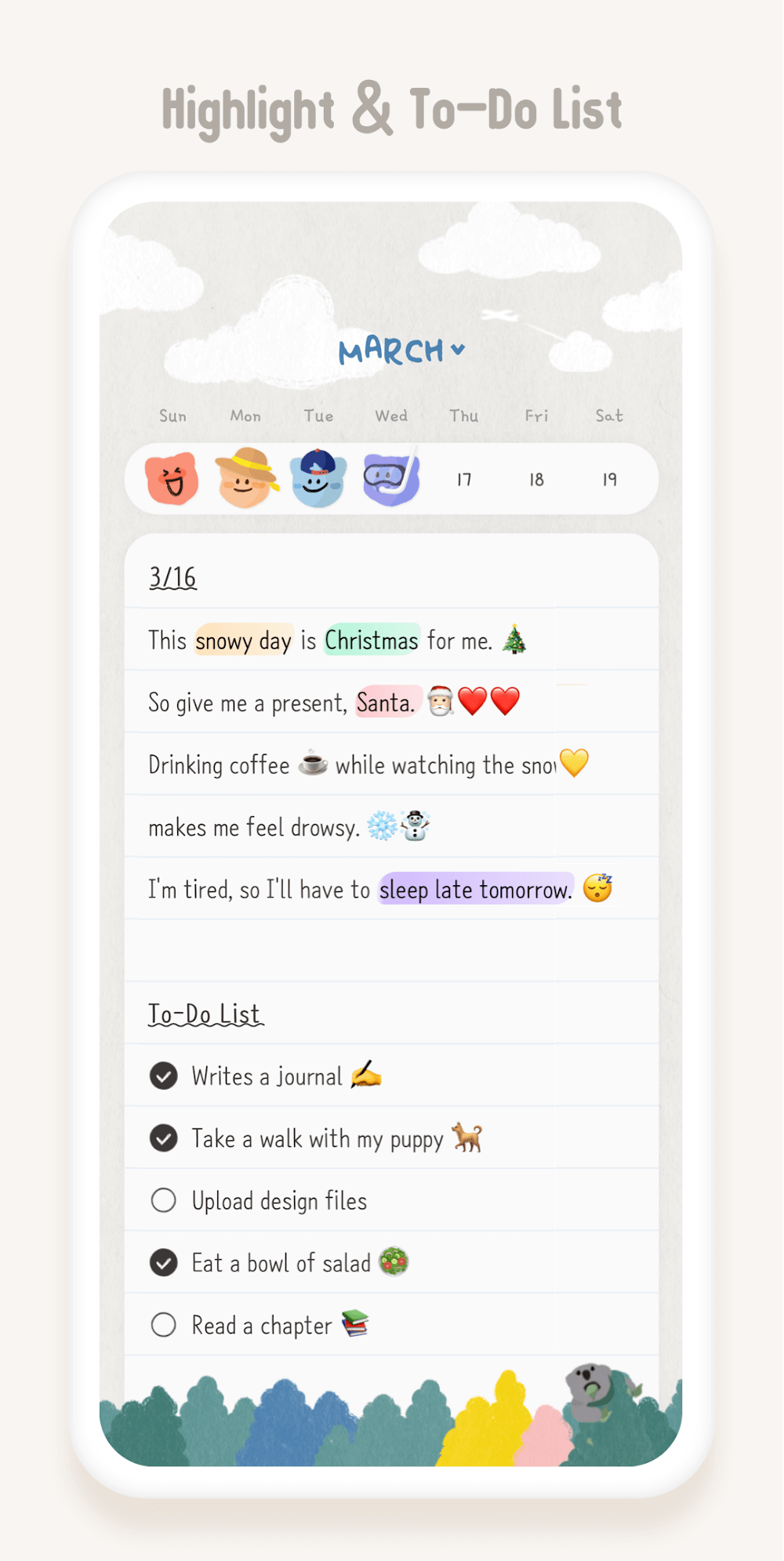 Soso Note Daily Journal apk-en pproaching due dates for any chores or to-dos you’ve set. You can also send it to the main screen as a widget for easier tracking.WRITE JOURNALS WITH A LOVELY ATMOSPHEREThe app has a lovely and friendly interface and atmosphere, so you can write a journal filled with love and cuteness. You can also attach photos or videos to the content or write cute emotes blended with your thoughts about the day and keep yourself motivated with some self-motivation.