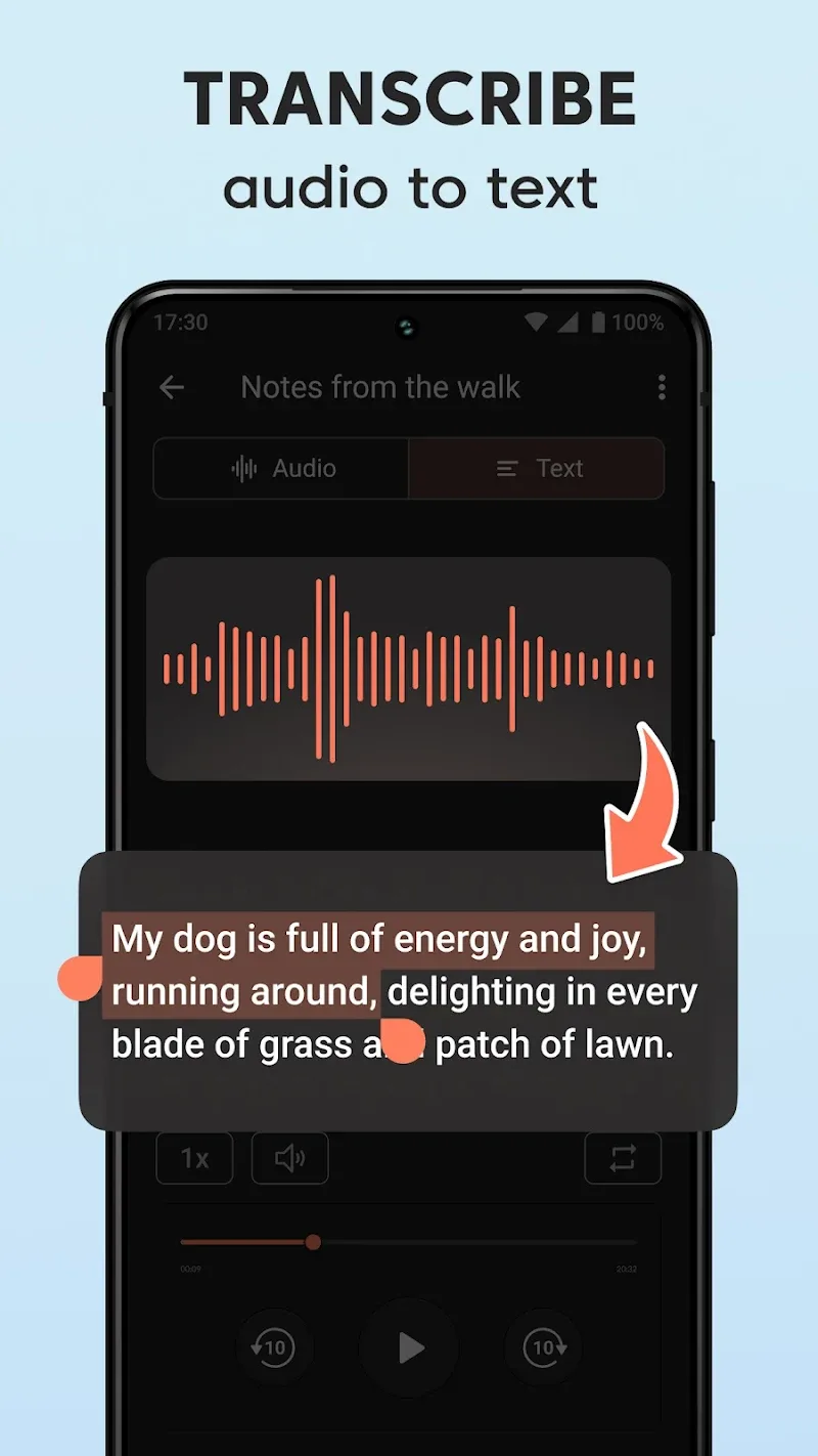 Sound Recorder Plus Voice Rec Premium e application provides many tools to help users create and edit recordings easily. All recordings will be listened to and edited before being saved to the collection.SPEECH-TO-TEXT TRANSFORMATIONThe application allows users to perform the voice-to-text conversion process with just one touch. All content in the audio clip will be converted quickly in a few seconds. Users will not waste time on manual transcription. They will use the complete and accurate recordings that the application has made to turn them into subtitles.Accurate voice conversion: The sounds appearing in the recordings can be converted into text. The voices in the