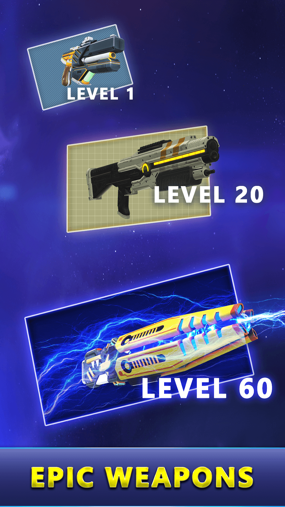 Spacero Sci Fi Hero Shooter 2 apk-en layer eliminate the creatures as quickly as possible. These weapons are advanced and extremely dangerous. Weapons include everything from flamethrowers to laser guns. The attacking ability of different weapons will be different. Give your characters the tools they need to face any enemy. Shoot consecutive fast targets. Protect yourself from your enemies. Each area infested by enemies can be attacked with a different weapon selected by the player. Put an end to their entire military force. By upgrading your weapons, you can stay well-equipped and ready for battle. Protect yourself and avoid falling into the traps they have prepared.