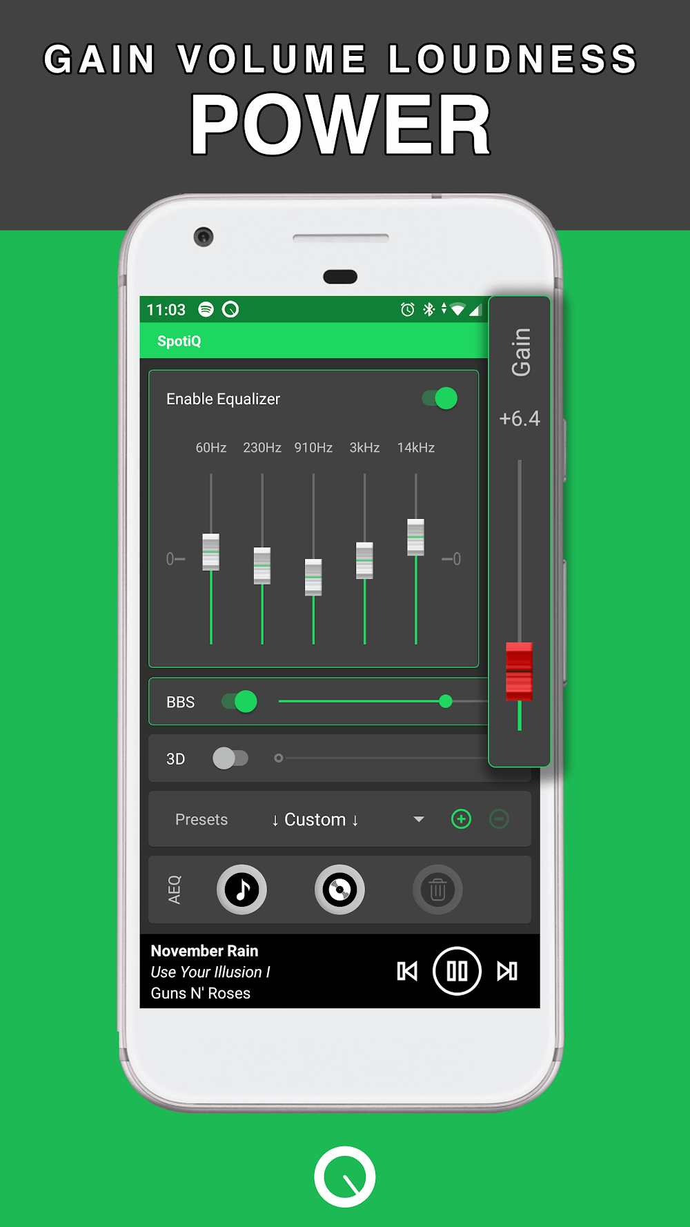 Spotiq Equalizer Bass Booster Mod Apk e using this app by browsing through its many preset styles to discover a plethora of new ones. Give it a shot right now!The app includes a one-of-a-kind Bass Boost System that lets you add and adjust deep and natural boosts to songs in your Spotify playlist. You can create new playlists by choosing a preset and then applying it to the songs in your library. Turn up the volume on your subwoofer and sub-bass. Music like you’ve never heard before!SpotiQ is a bass booster and equalizer.