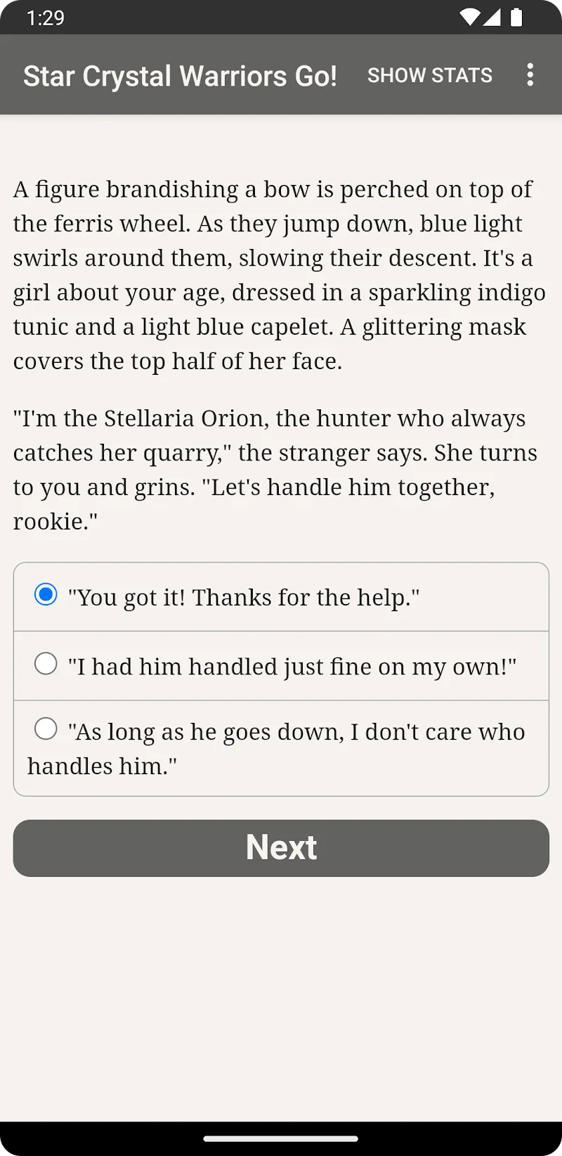 Star Crystal Warriors Go apk-en mits, making you feel like you are a real warrior in this world.Shape the narrative: In this game, you are the one who shapes the story. You are the one who writes your own story, from beginning to end. Bringing you vivid and realistic gameplay.Forge romantic bonds: You will also come to attractive encounters with romantic relationships. Each character will bring you different experiences and feelings, making you immersed without feeling bored even for a second.