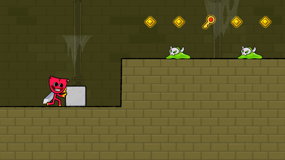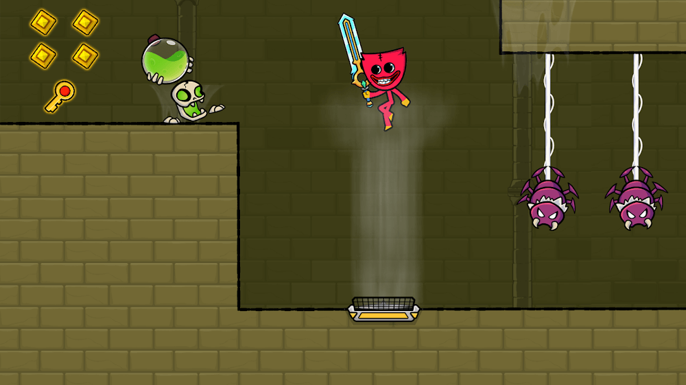 Red Stickman is an exciting action-adventure game that you cannot ignore if you want to participate in the journey to rescue your friend. The gameplay is inspired by the familiar Red And Blue Stickman game, and you will transform into the main character, a red monster. Your mission is to overcome dangerous enemies and obstacles to save the green monster’s life. Accompanying you is also a pet that can fly, and it will support several functions to help you quickly overcome
