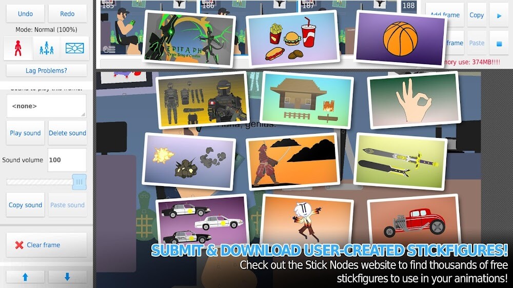 Stick Nodes Pro Mod Apk ant. Of course, this job is not a simple job either, but the features are similar to some of the features of video editing applications.Convert products to files: Created moving elements can become GIFs or an MP4 video file.Easy to share: With just one click, your product is available on social networking sites like YouTube.CUSTOMIZABLE FRAME TWEENINGUsing images to create animations is a no-brainer when incorporating the features of Stick Nodes Pro. Users can turn static elements into dynamic elements, and you can create a sequence of images. These series of images will have different details, and when they stand in a row, you will definitely see something moving. This is nothing new, but it can surprise viewers because of the fun it brings. Therefore, creating a gentle photo with a windy environment and constantly swaying tree branches is no longer a far-fetched product that they can hardly reach.Smooth effects: You can use and tweak existing things to help an object move accurately for any purpose.Combine a series of options: Creating many different motions is an extremely challenging step that users have to do themselves.DIVERSE LIBRARY OF STICK