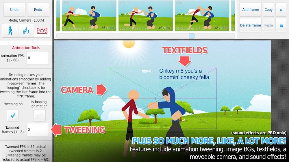 Stick Nodes Pro Premium FIGURESBesides giving an image a bit of natural life, users can add different effects. This is a feature that users can recognize as similar to what is found in a video editing application. Specifically, they can add color-changing elements such as filters and color adjustments to make the image more harmonious. Additionally, throughout the editing process, a number of sound effects are added, and this is what makes the difference. A bush of grass can sway with the wind, and a bush of grass can do the same thing, but with added sound, it will definitely impress viewers more because they feel the realism.Variety of numbers: By owning stick figures, every operation becomes precise and helps users satisfy their creativity.Provide animations: Elements can move if you combine them correctly with detailed patterns and movements.POWERFUL CAMERA CONTROLSCreative apps always bring ideas to users in many ways, and in this app, users can go to the app’s original website. Specifically, this is the place where products are gathered publicly by creators and developers, which also allows you to download them. This means that these elements are allowed, and from t
