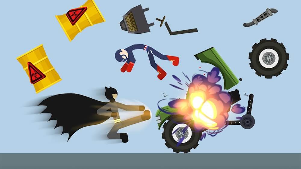 Stickman Break Ragdoll Bone apk-en EAUTIFUL EFFECTS AND ANIMATIONS ON THE ENEMYAmazing visual effects from the weapons and animations are fascinating and mesmerizing for a stickman ragdoll game. There are many ways to inflict harm on your adversary, such as weapons or vehicles. Whatever method you use, they are beautiful and unique, making this game more enjoyable, and you can do more creatively. Besides, new weapons and vehicles will be updated regularly, giving players more joy as they have new ideas for their tasks.