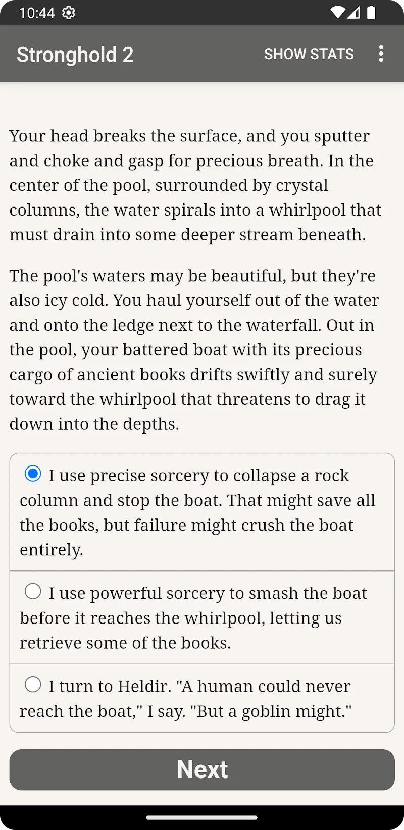 During the process of experimenting with magic, the player accidentally awakens a legendary dragon. The main plot of Stronghold: Caverns of Sorcery revolves around the story of magic and the thousand-year-old dragon. The interactions between the player and the text will help the story progress. Players can develop their imagination and problem-solving skills.IMMERSIVE STORYTELLINGThe story of magic and the mysterious dragon will continue. Players will take turns discovering new details. You will take on the main role in this fascinating story. The details will be shown through the text. Players will read and imagine a world of their own.Expansive Narrative Control: The sto
