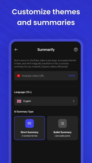 Summarize: AI Video Summarizer is an extremely unique and convenient application. The application will bring you extremely useful features and tools to help you summarize your videos quickly. You will not need to sit for hours to watch and filter the information in your videos and shorten it; this process is extremely time-consuming, but when using this application, the system only takes a few seconds, and you can own the most detailed and accurate summary videos for you.INSTANT SUMMARIESThe application will summarize immediately when receiving the videos you have selected. You do not need to wait too long to receive the final results, but it only takes a few short seconds for you to quickly receive complete and accurate results.Time Saver: With this application, you will save a lot of time editing and summarizing your videos. You just need to wait for a few seconds to have extremely accurate summaries for you.Versatile Access: You can also access videos on YouTube or local videos quickly or even from different sources to give you the most convenience when working without having to switch tabs too many times.INTERACTIVE QUIZZESYou can also do interactive quizzes with this application in the fastest way. You will be provided with features and tools so that you can ask questions quickly and easily.Better Retention: The application will help you increase your ability to retain and make those contents more interesting and attractive with extremely positive and attractive content so that you can make your learning content more attractive and interesting.Custom Questions: You can customize your questions and answers quickly and easily. The application allows you to change the position of answers and questions quickly and easily, not only that, you can also add unique and interesting effects to the correct answers to make it more fun.