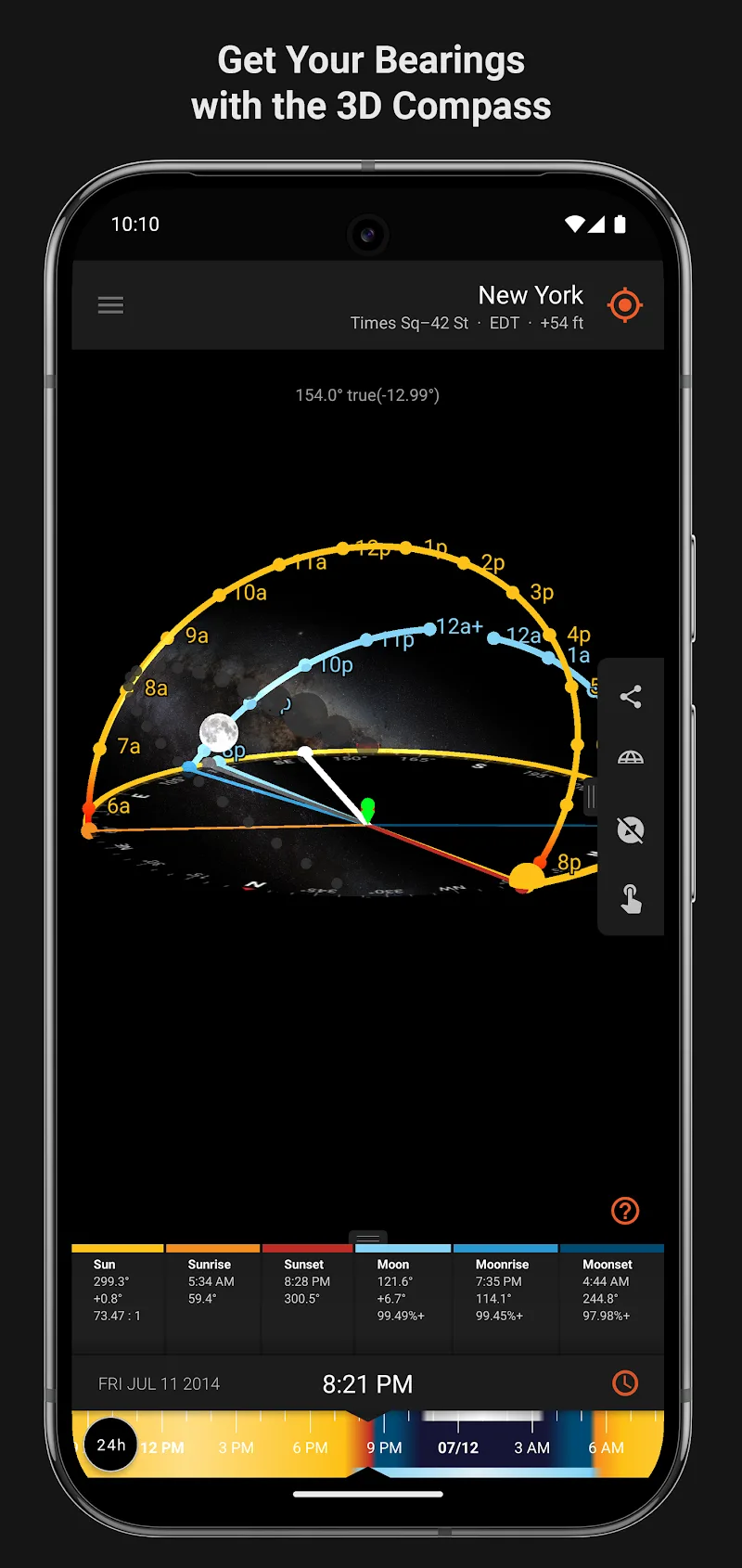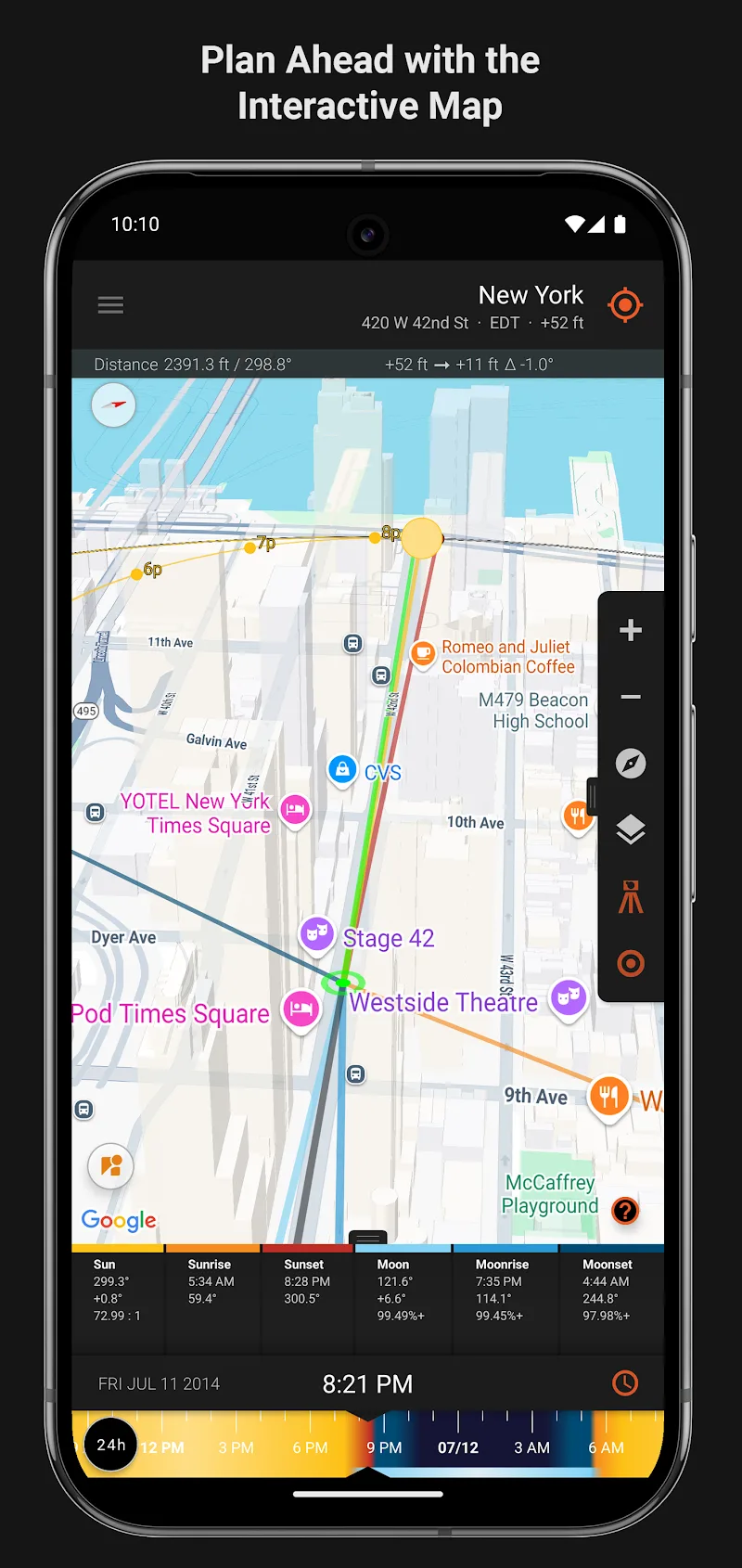 Sun Surveyor Sun Moon Premium them can effortlessly get ready to create works of art that are exact to the moment.Real-time firmament visualization: These ethereal bodies will show up outwardly right on your phone so you know how they will influence the encompassing environment.Culminate timing prediction: And you ought to be at the proper place sometime recently, everything happens. When it happens, that’s the culmination time.INTERACTIVE MAP & 3D COMPASSAnd in the event that you need to go to places that can take full advantage of the impacts, it is also simple to go. Since the application has been able to ca