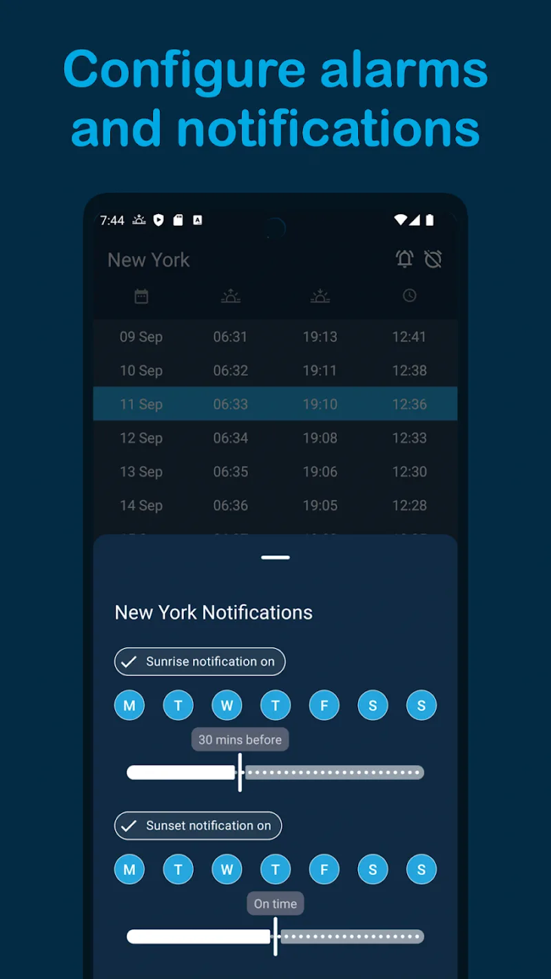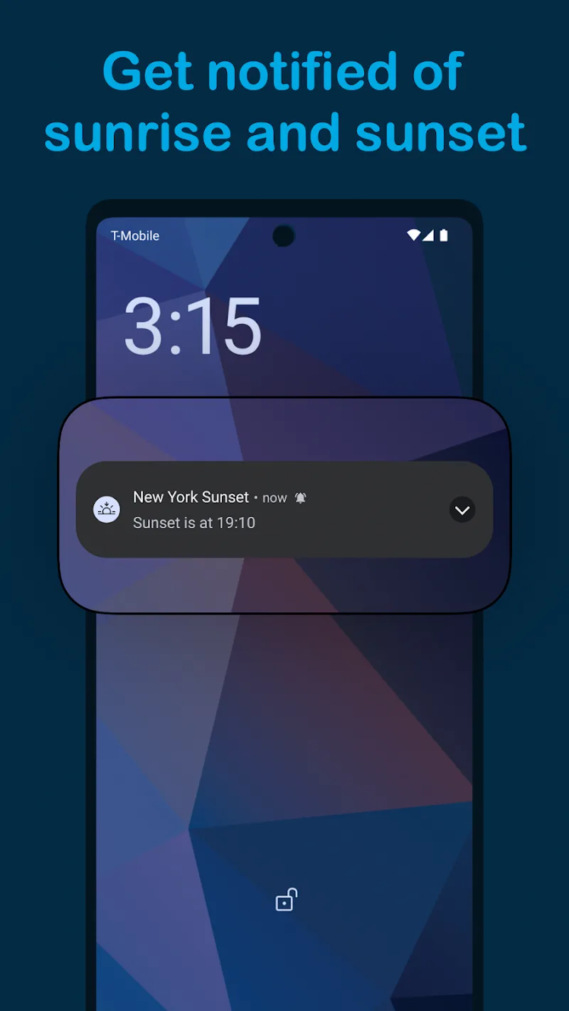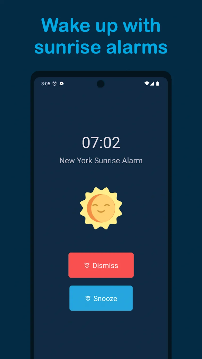 Sunrise and Sunset Times provides users with simple but equally useful tools when traveling. They often want to know the right time to observe and record the most beautiful moments of the day. At the same time, useful information will be sent to help you perform activities more easily.INTERACTIVE MAPSUsers can fully enjoy beautiful moments at a specific location from sunrise to sunset. This is of course the moment that any user wants to see when traveling.Visual Sun Path: Throughout the process of use, users can easily see the positions of the sun and are displayed specifically on the available map. Therefore, determining the time to see these moments is not too difficult for many people, so the application is friendly to many people.Location Planning: An interesting feature of the application is that it often focuses on activities related to the sun to help each person have the most enjoyable experience. Specifically, tips will be sent to users that will provide solutions for shooting angles or areas suitable for entertainment.CUSTOMIZABLE ALARMS & NOTIFICATIONSUsing the application can be similar to a pure alarm clock if each person does not want to miss any moment. At the same time, the amount of information can be fine-tuned depending on your needs.Timely Alerts: When you travel, you often watch for the best moments at sea that will be captured and become an unforgettable memory. Of course, with limited time, you often do not want to miss them, so the system allows you to set alarms for the best times of the day.Never Miss a Moment: If users do not turn on the alarm, they can also consider receiving additional notifications from the system for a more suitable experience. Specifically, they will be able to receive real-time information about upcoming sunrises or sunsets so they can be better prepared.