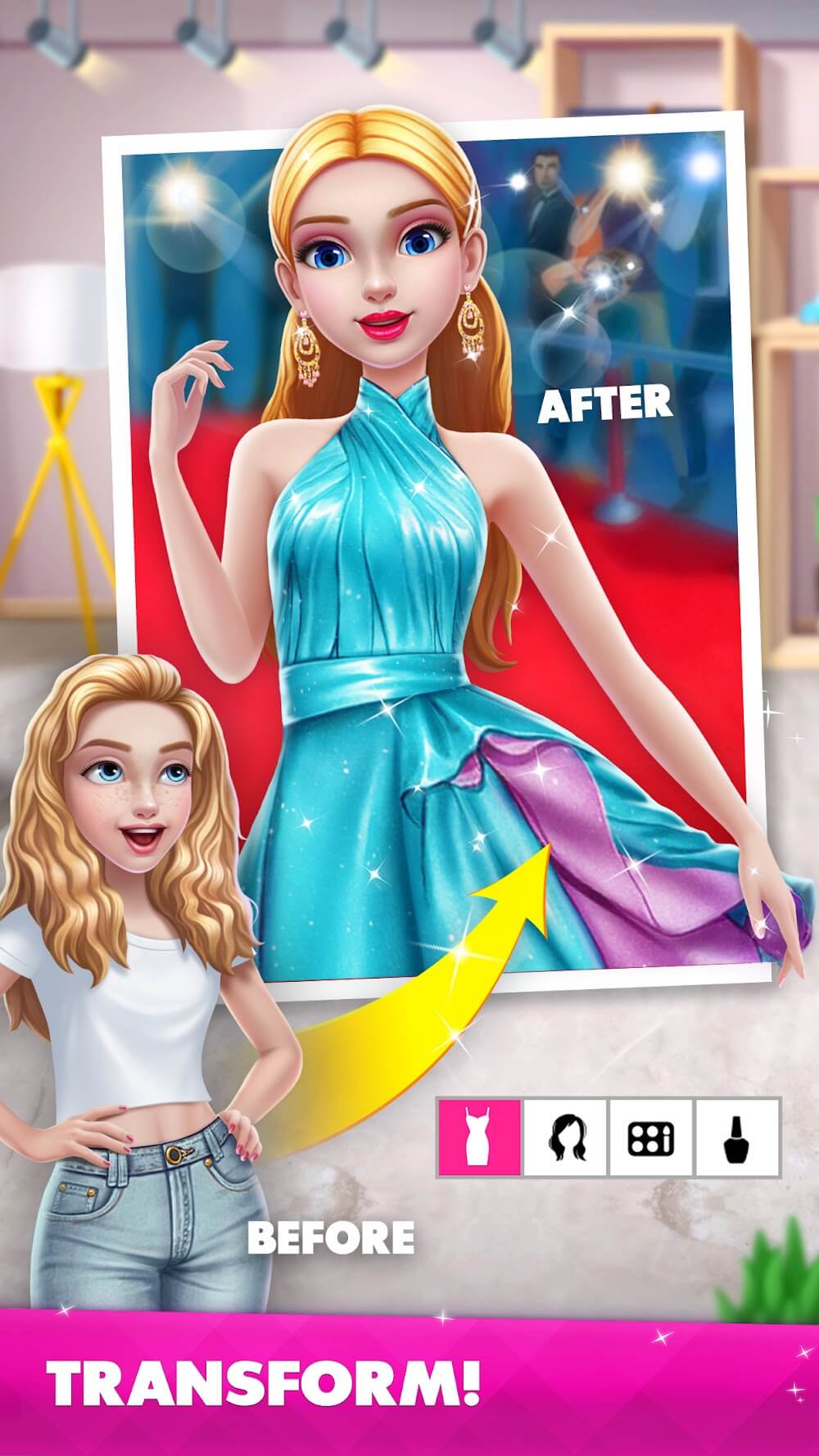 Super Stylist Fashion Makeover Premium ake customers’ faces more radiant thanks to the make-up layers they paint on.ATTEND HOLLYWOOD EVENTSIf, in other fighting games, players have to defeat a boss who has completed the level and create their own achievements, then this game also has a similar feature. Simple requests from regular customers will be considered easy levels until the player encounters customers who are Hollywood superstars. The requirements of these customers will become even more special, and players need to meet those requirements.Accompany clients: Although these famous clients will be difficult to please, the rewards are well worth it when players are allowed to participate in joint events with them and promote their services.Get exposure for your studio: Of course, if these customers are satisfied with their service, their positive reviews on their 9 personal pages will be even more valuable.WIN FASHION BATTLESTo make this game more dramatic, the developers have created a feature that allows players to participate in an arena. The drama in this arena will be shown through beauty battles and of course the way to decide victory or defeat in this arena is to rely entirely on t