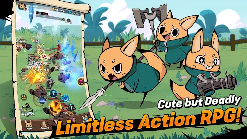 Tailed Demon Slayer: RISE Mod Apk – embarks on an epic quest to break curses and restore peace globally.A hundred years after the triumphant victory over King Lich, chaos reigns once more as evil forces resurface. Fox beastmen, who had previously sought refuge on the sky island of Magonia to escape the curse of King Lich, are again under threat as rumors spread of a villainous Dark Mage unleashing demons upon the land. You have been entrusted with the critical mission of rescuing the fox beastmen from the recurring curse. The fate of the world now rests on your shoulders as you embark on the pursuit of peace. Are you ready to break the curse and be the hero?COLLECT RESOURCES, WITH A VISION FOR PEACEFUL OUTCOMESThis game’s focus on combat is tremendous, and it features interesting strategic options. You must hone your weapon skills and equip yourself adequately to face the unrelenting assault of the Dark Mage’s loyalists and their demonic allies. Winning these fights will help you stock up on supplies and strengthen your army. The spirits you communicate with along your trip might further increase your battle prowess. The fast leveli