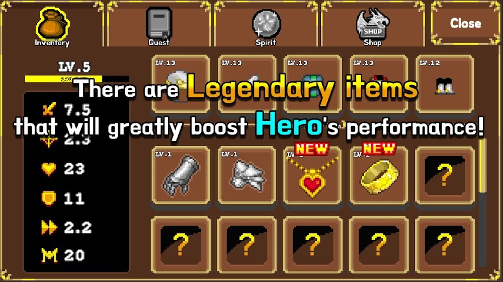 Tap Knight Dragons Attack Premium rewards that the game provides will appease the players. Thousands of coins, along with unexpected rewards, will be given to players with good achievements.LEGENDARY ITEMSThe list of legendary items will quickly add many new models. Players will have the destructive power of immortal warriors. They can upgrade the items they already own to make them stronger and more destructive. The player’s journey of discovery begins with the fight against evil monsters.Power Beyond Imagination: Many legendary items will be unlocked by players in this game. The appearance of 8 new items will give players more choices. All can be brought into the arena and used as a great shi