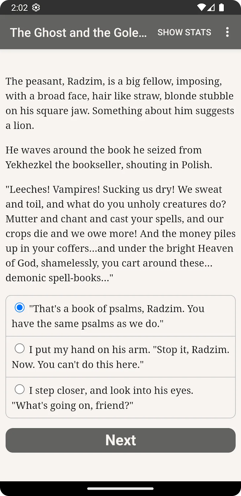 The Ghost and the Golem MOD APK – Interactive fantasy novel set in 1881 Jewish village.The Ghost and the Golem is a game inspired by the famous novel of the same name by writer Benjamin Rosenbaum. The game is based entirely on 450,000 words of text and hundreds of choices, without graphics or sound effects, and encourages you to play the game with your own imagination, creating great excitement when playing the game. In this game, you have to convince some characters to become your allies in the journey to save your tribe from the evil forces that are covering your tribe.RICH HI
