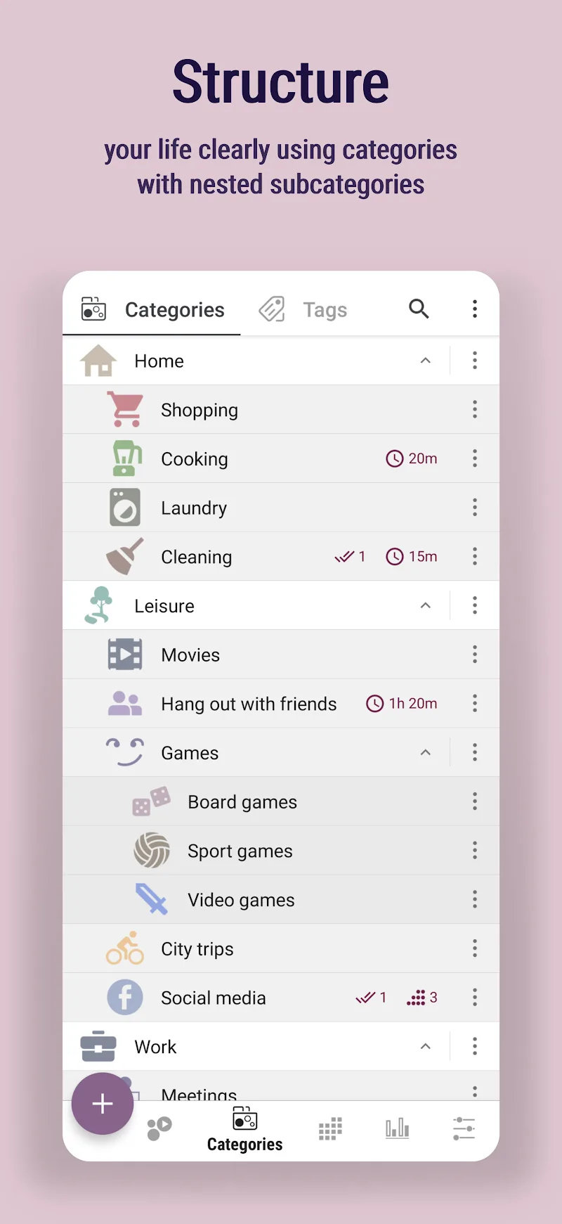 Time Planner apk-en ye-catching design and often help users recognize the topic and level of importance.Hierarchical Structure: Over time, tasks are classified into different categories for easy searching. This classification can be further divided by time if you need it.Multiple Nesting Levels: Layers represent a certain period of time for a specific task. At the same time, each person can quickly arrange different layers for easy management.