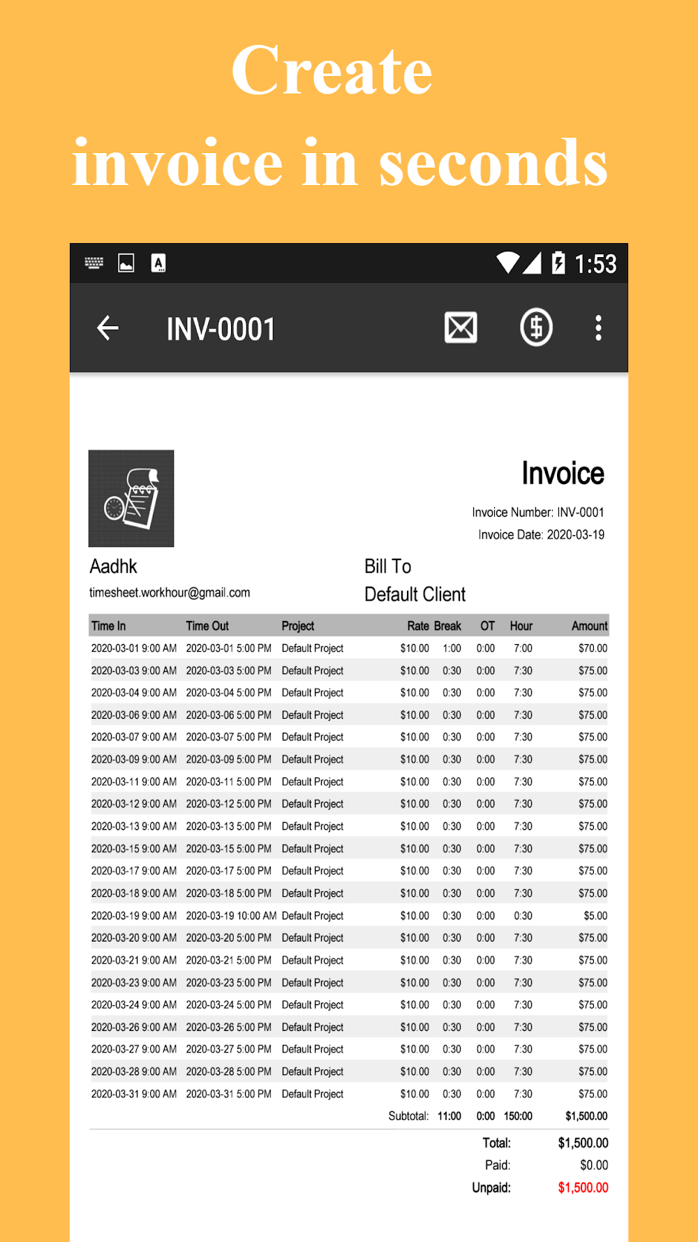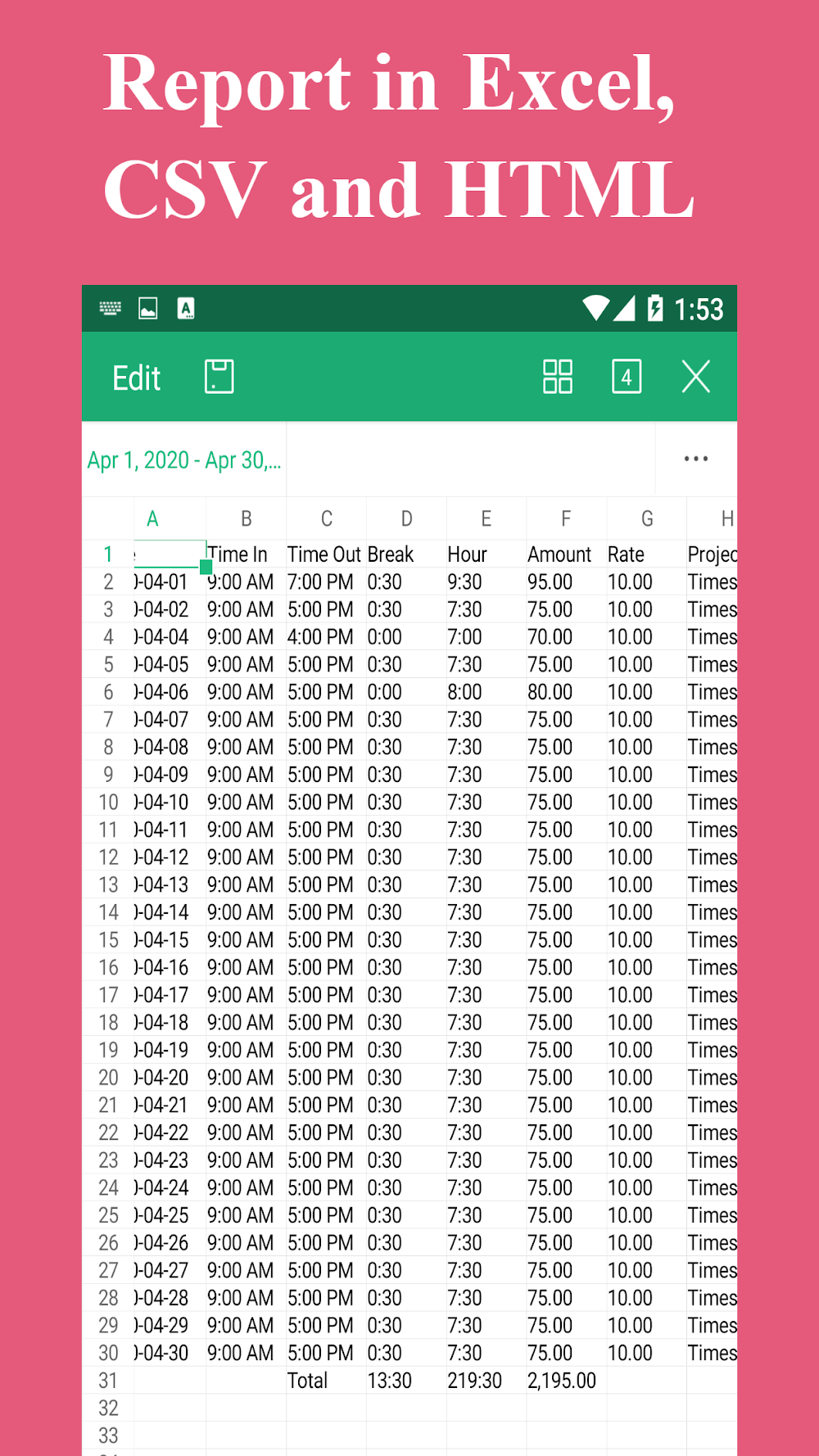 Timesheet – Work Hours Tracker creates a streamlined schedule that helps you manage your time quickly. With just one glance, you’ll know how much you’ll earn in a given period. Scheduling your paychecks often helps you budget more effectively when you’re working multiple jobs.COMPREHENSIVE TIME AND EARNINGS TRACKINGIf you want to know how your work is going, this feature is perfect for you. Multiple people can access multiple aspects of your work throughout the process.Flexible Time Entry: Instead of having to open multiple tabs, try adding information to a connected system. They can often create a timer, widget, or calendar that’s suitable for tracking different steps.Automated Calculations: Calculating money often doesn’t have to be done manually. Let the data do the work and quickly tell you if your money is positive this month.Detailed Financial Tracking: If your job has a period of deduction, you should notify the system. From there, it will store and quickly generate real-time accurate data.EFFICIENT MANAGEMENT AND REPORTINGThroughout the usage process, users can realize the potential of the current application. This is completely understandable because anyone will need to manage their work throughout the time.Multi-Job Support: If you are a person who does many jobs at the same time, arrange your schedule reasonably. This is completely understandable because each person can create flexible times to ensure efficiency.Customizable Pay Periods: Depending on each job, the way of paying salary also becomes different. This often helps you to open up reasonable spending ways before the next pay period.Versatile Export Options: All information about jobs is often shared into different files. It can be excel or CSV depending on your needs for storage operations.